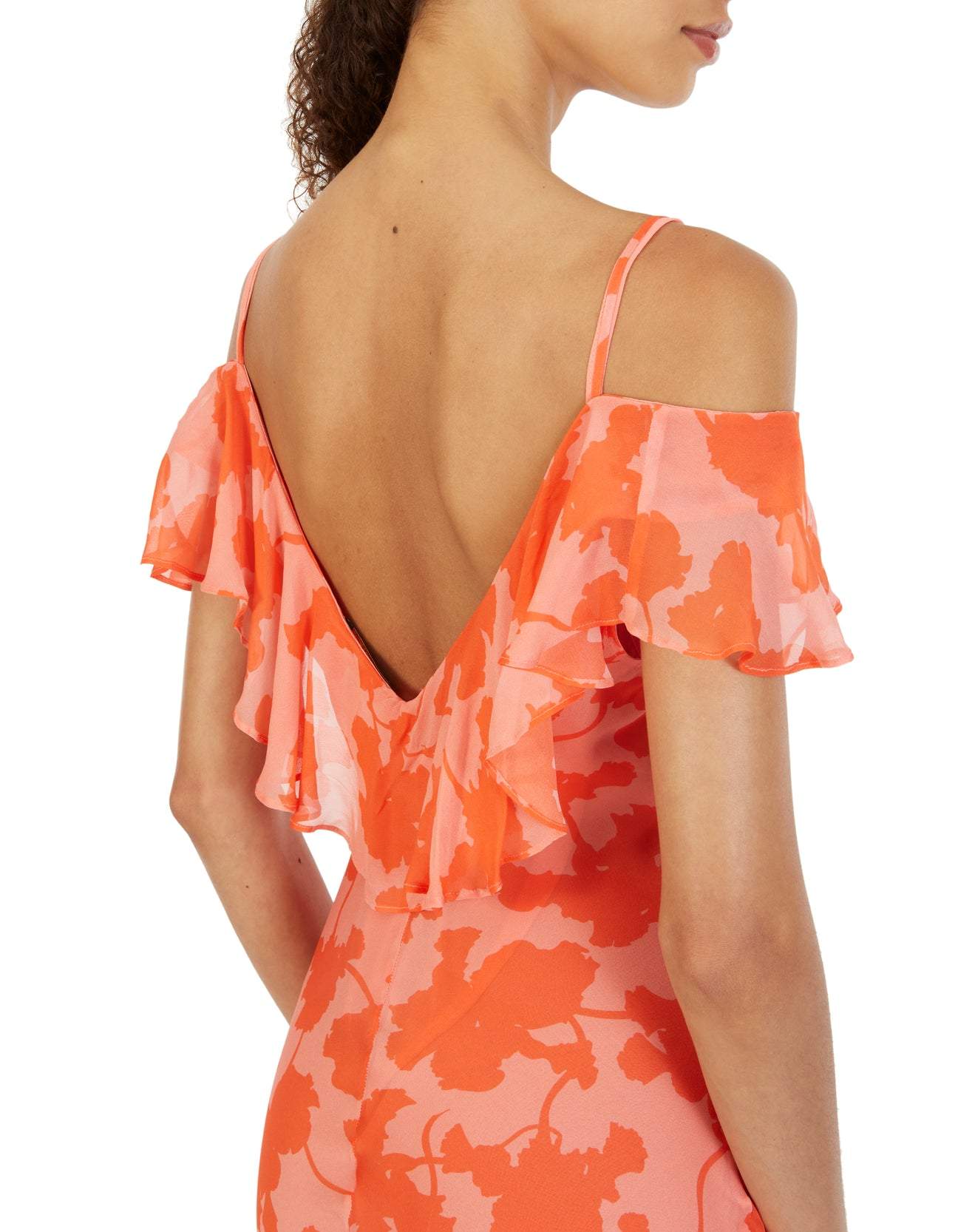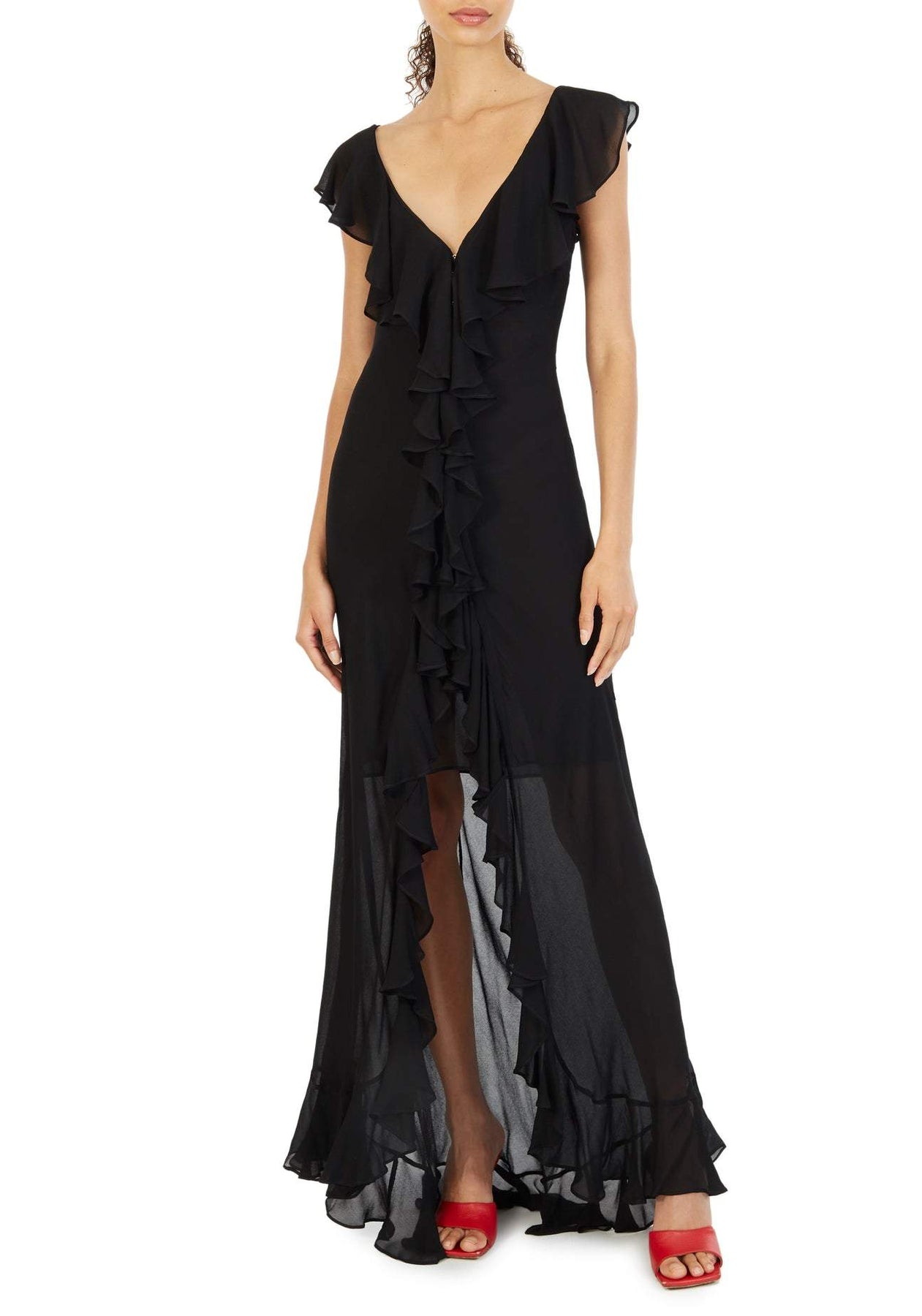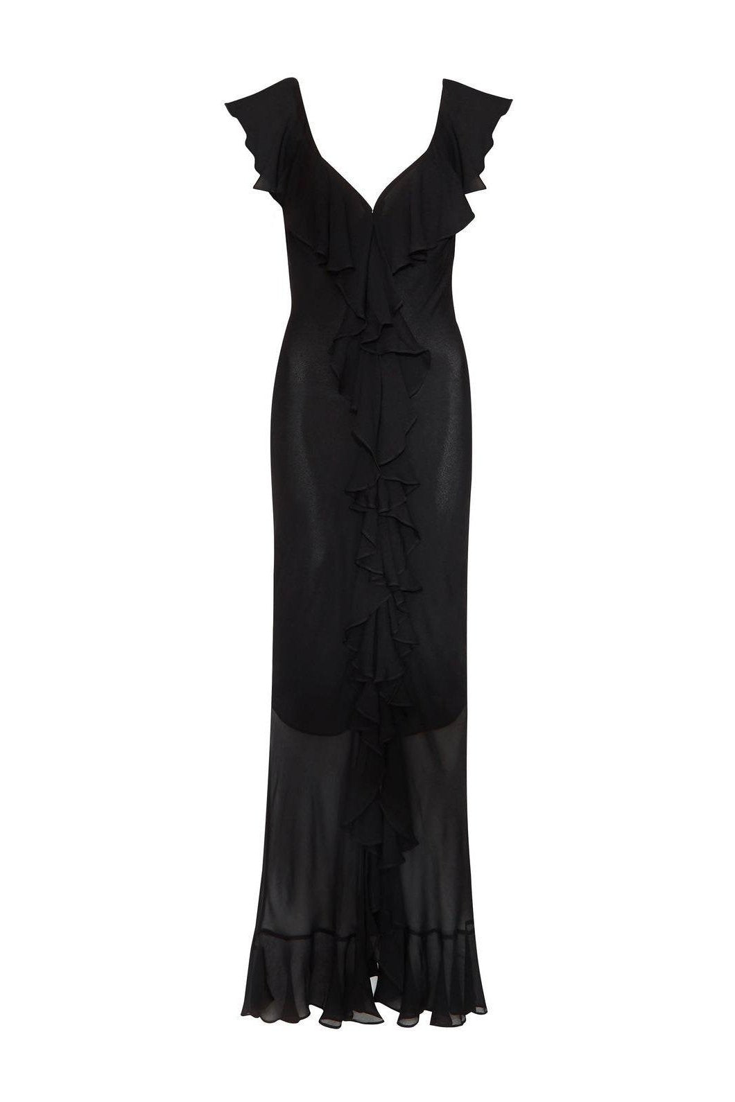 Novia V Yaka Fırfır Yırtmaçlı Şifon Elbise