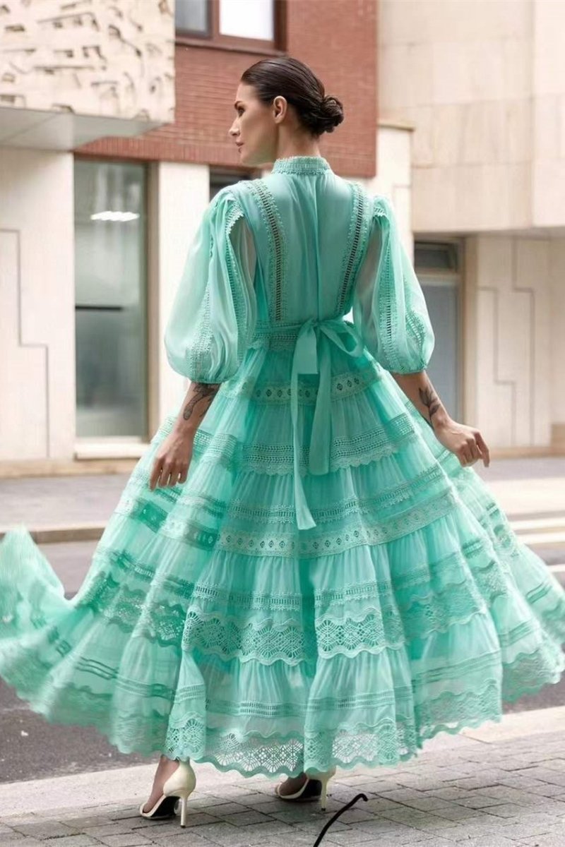 Paula İşlemeli Dantel Puf Kol Maxi Elbise