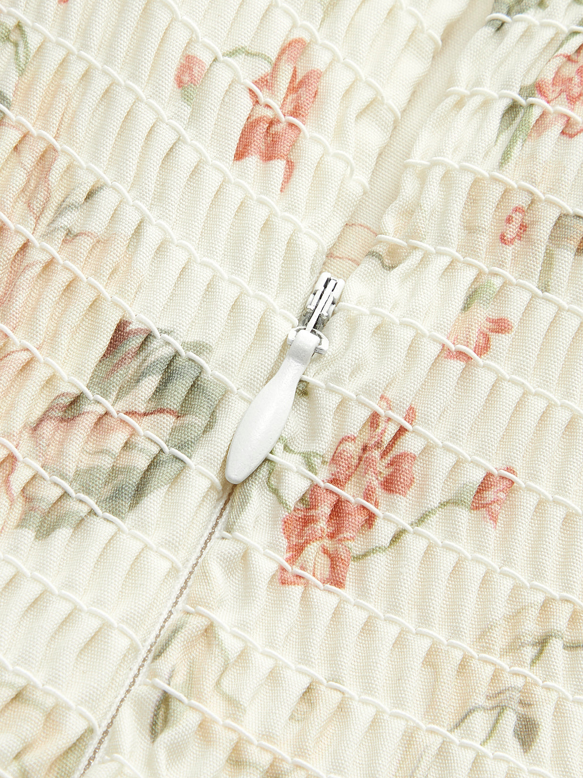Volanlı Askılı Bağcıklı Çiçekli Elbise