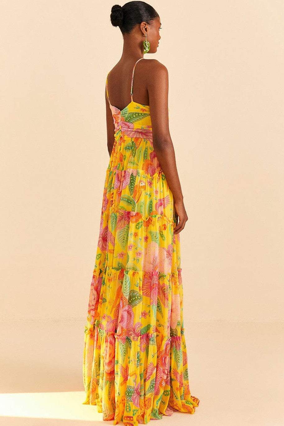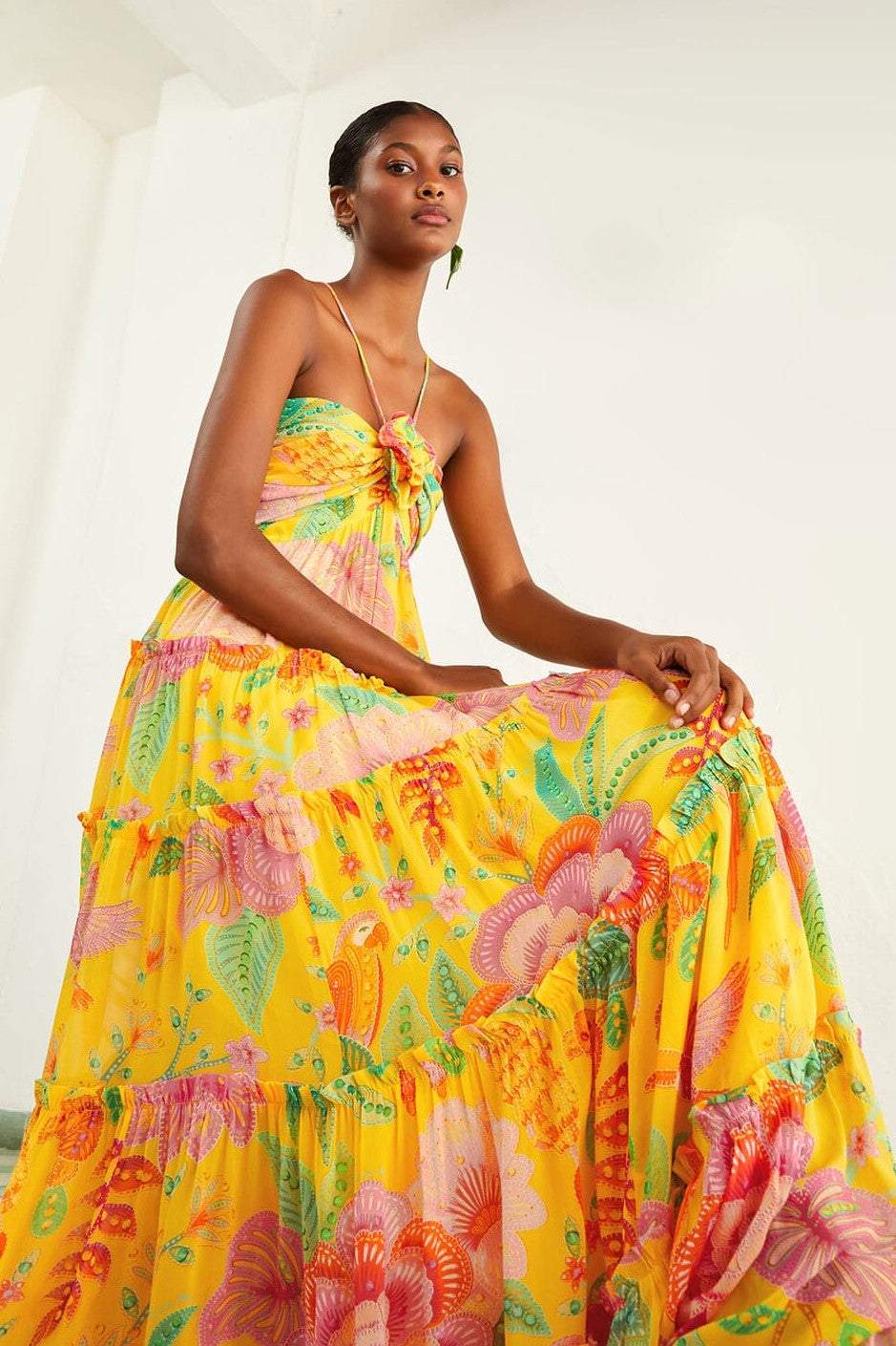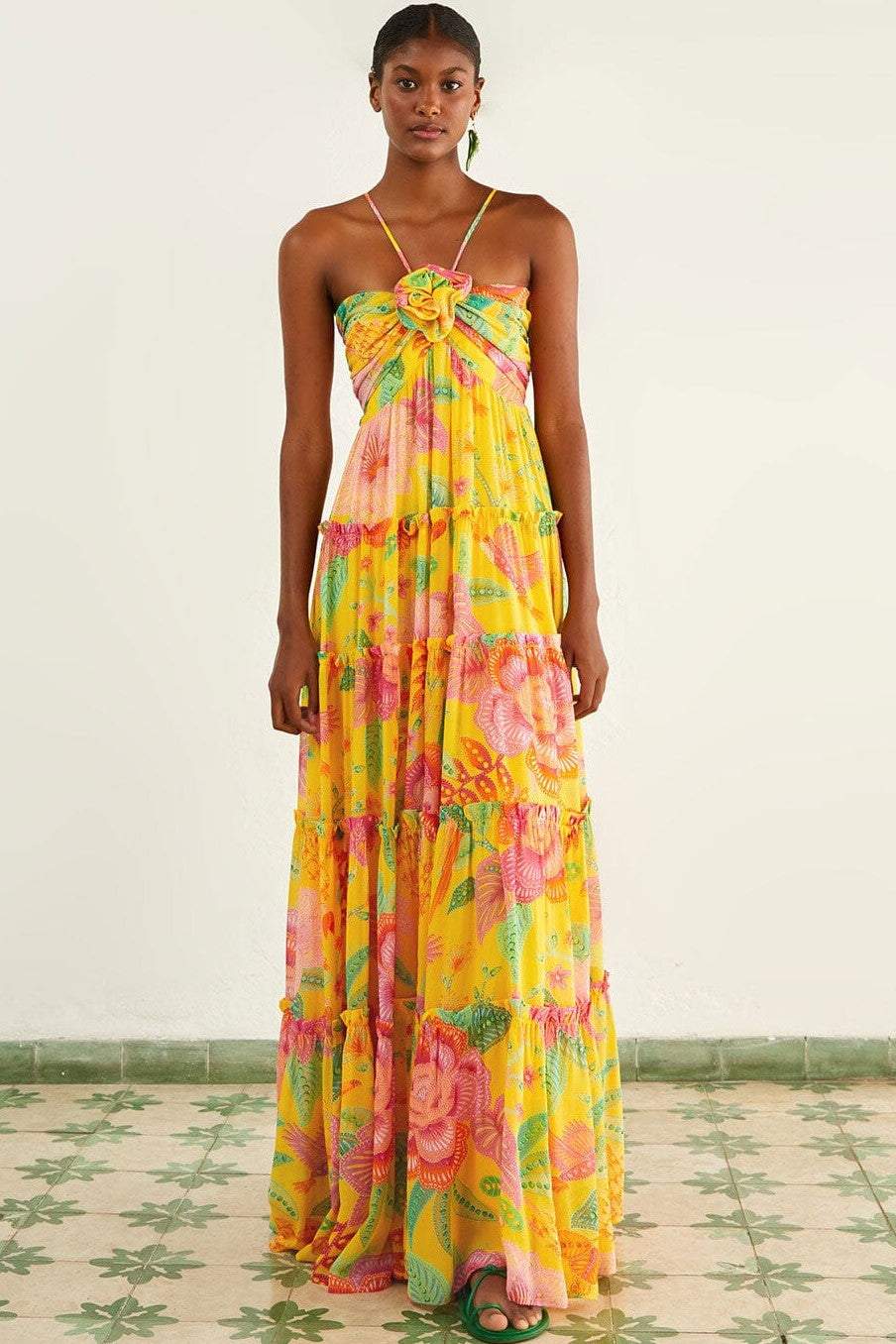 Sue Baskılı Boyundan Bağlamalı Ek Yeri Maxi Elbise