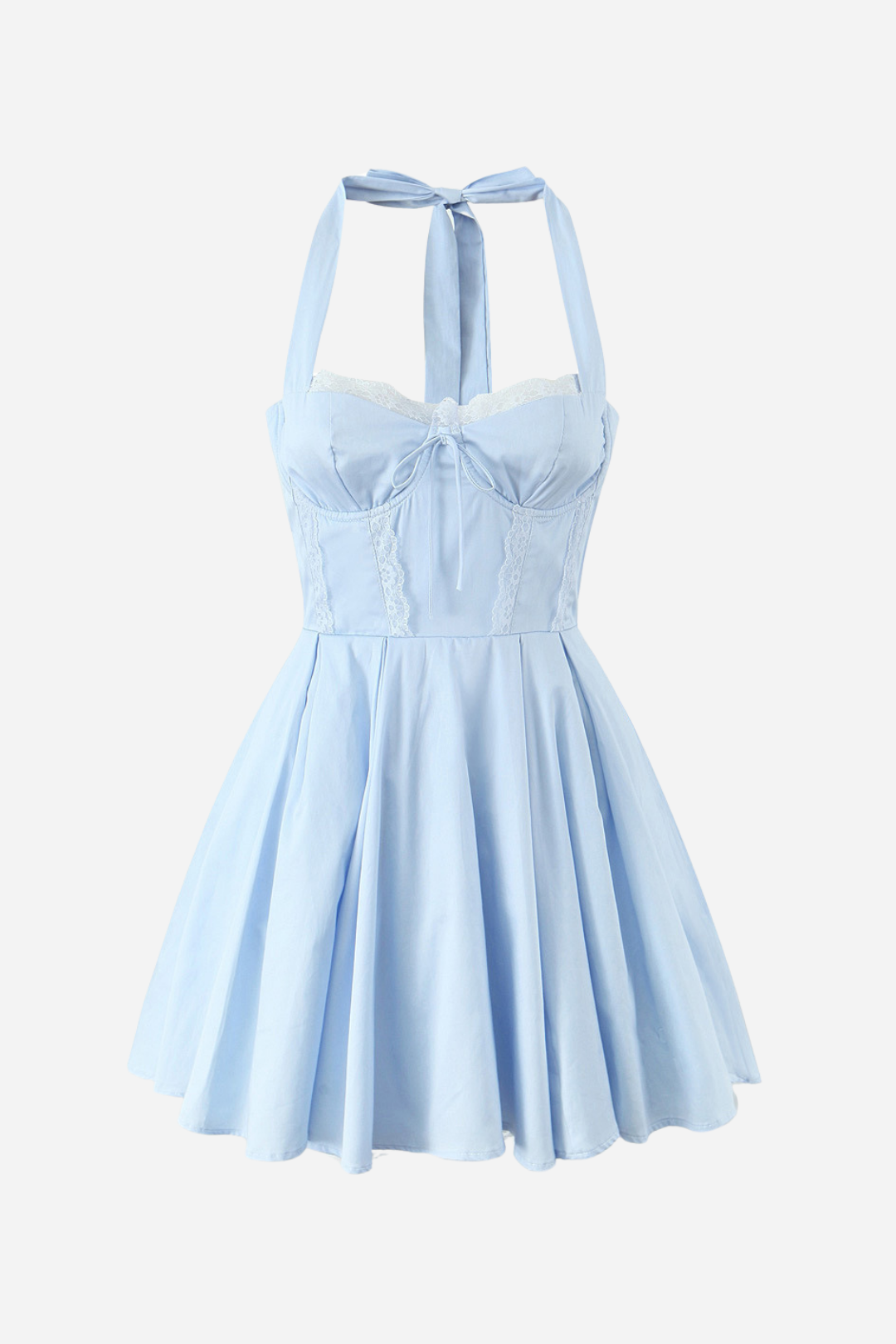 Esther Boyundan Bağlamalı Fırfır Etek Boyu Mini Elbise