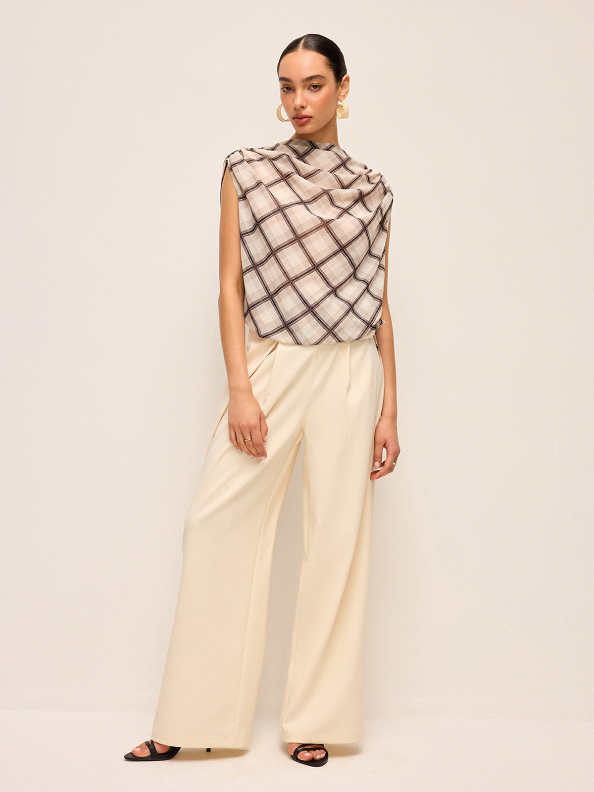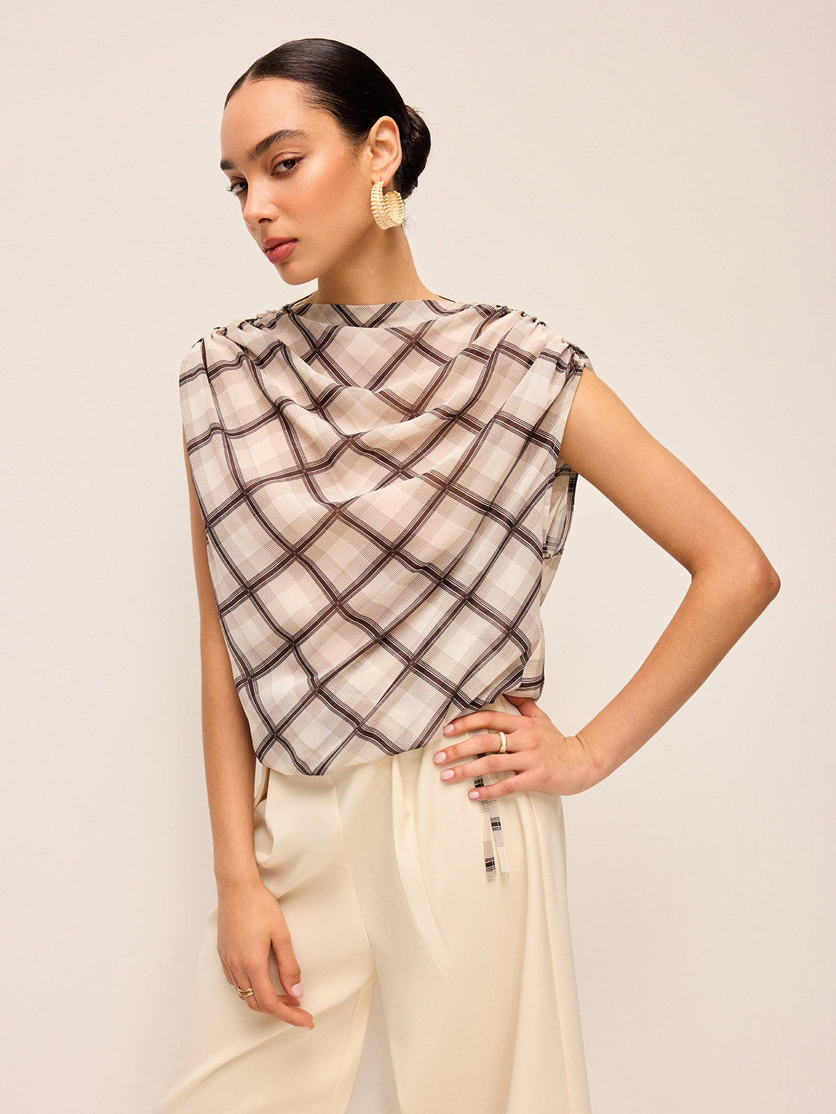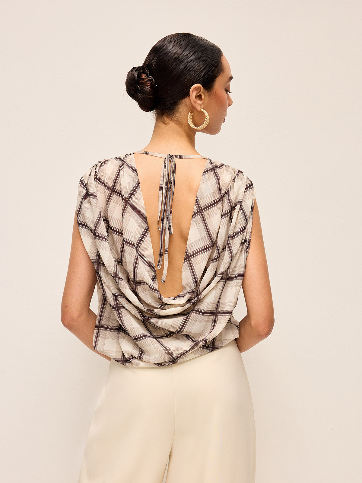 Kolsuz Ekose Açık Sırtlı Şifon Gömlek