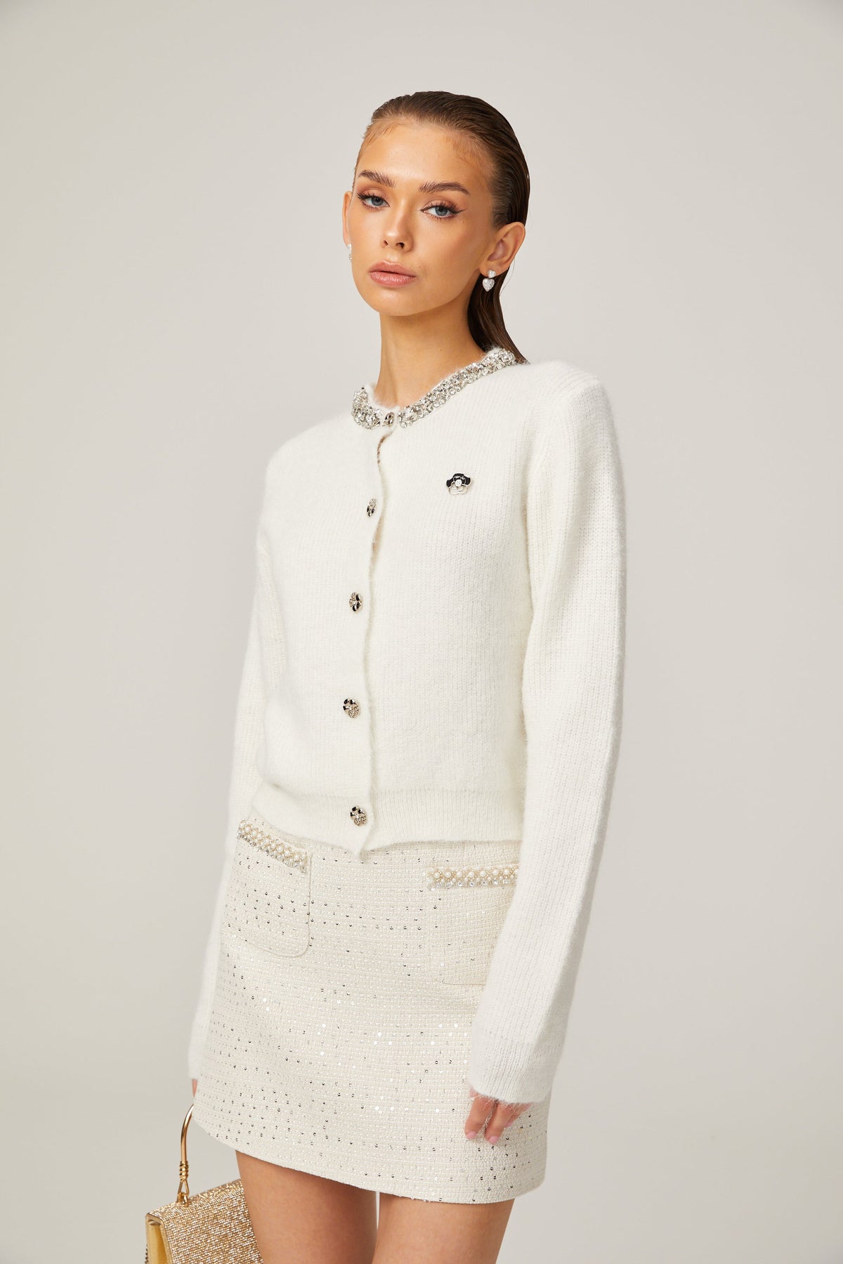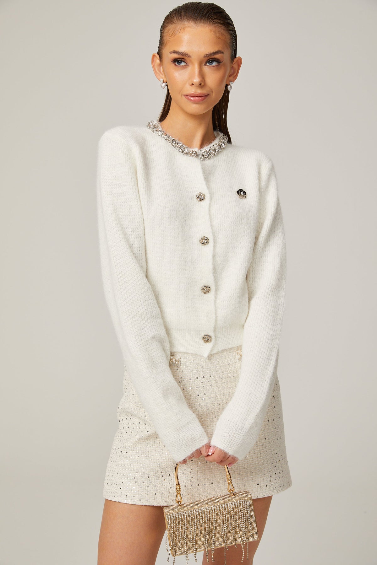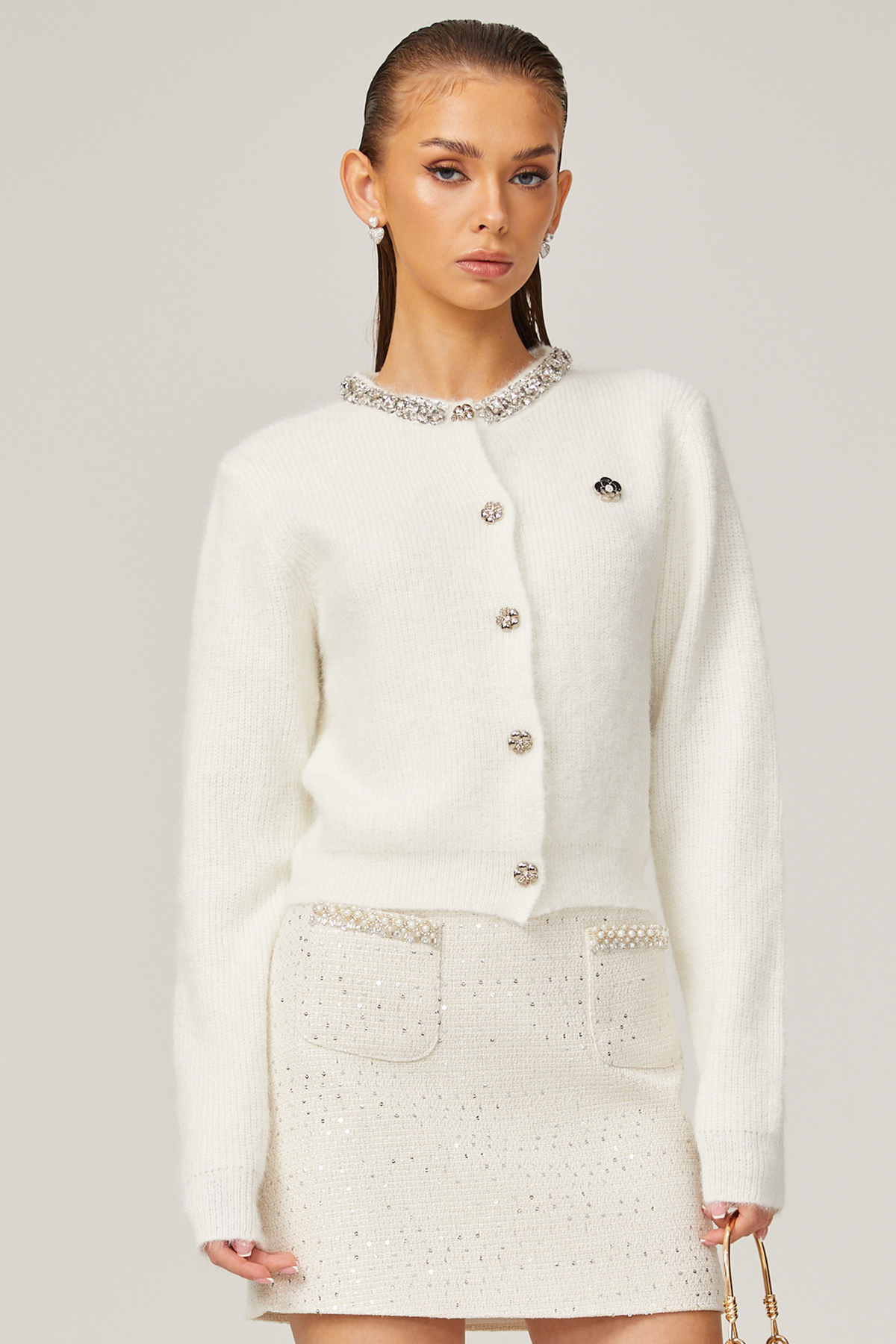 Désirée Beyaz İnci Süslemeli Örgü Hırka