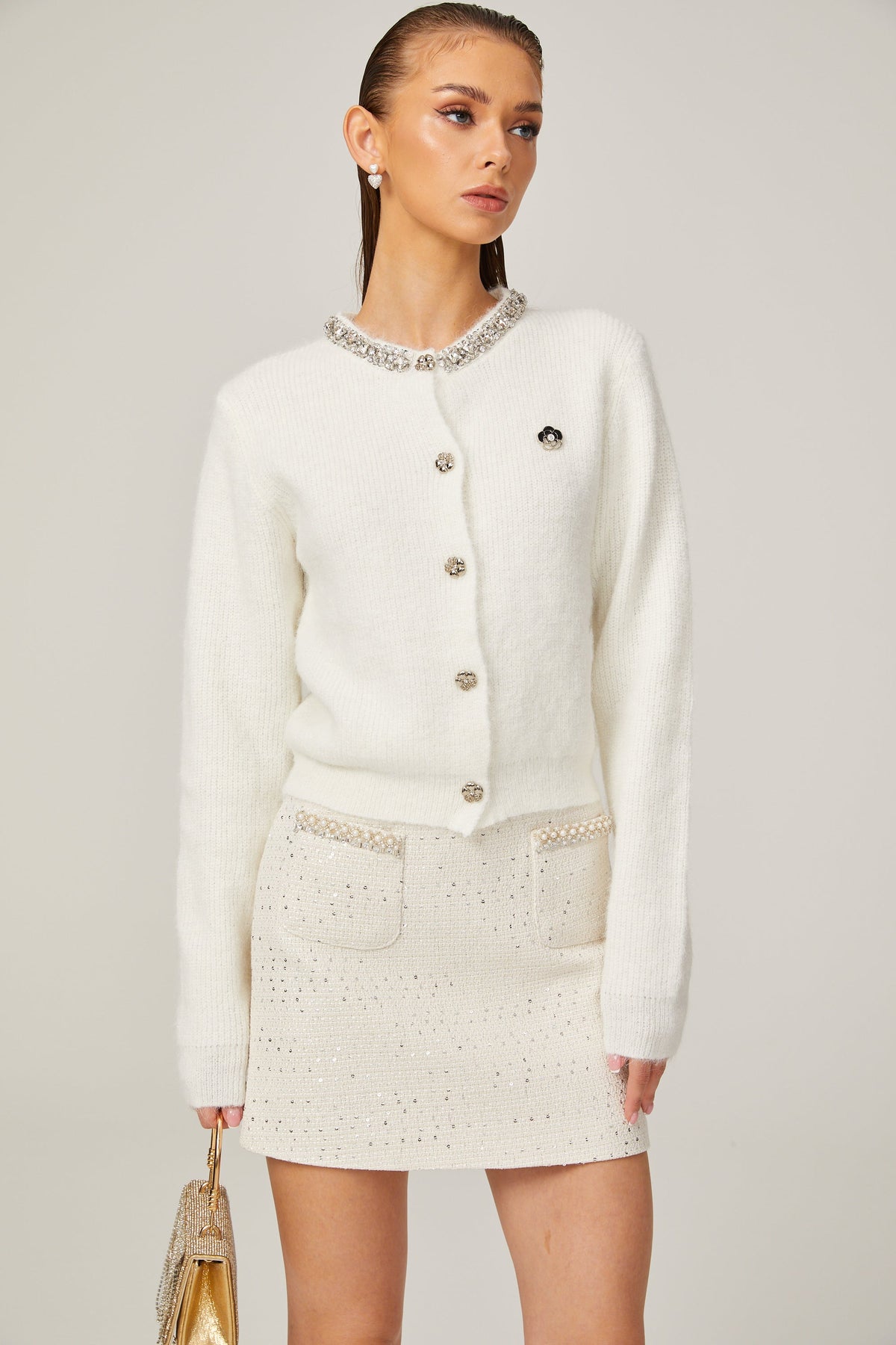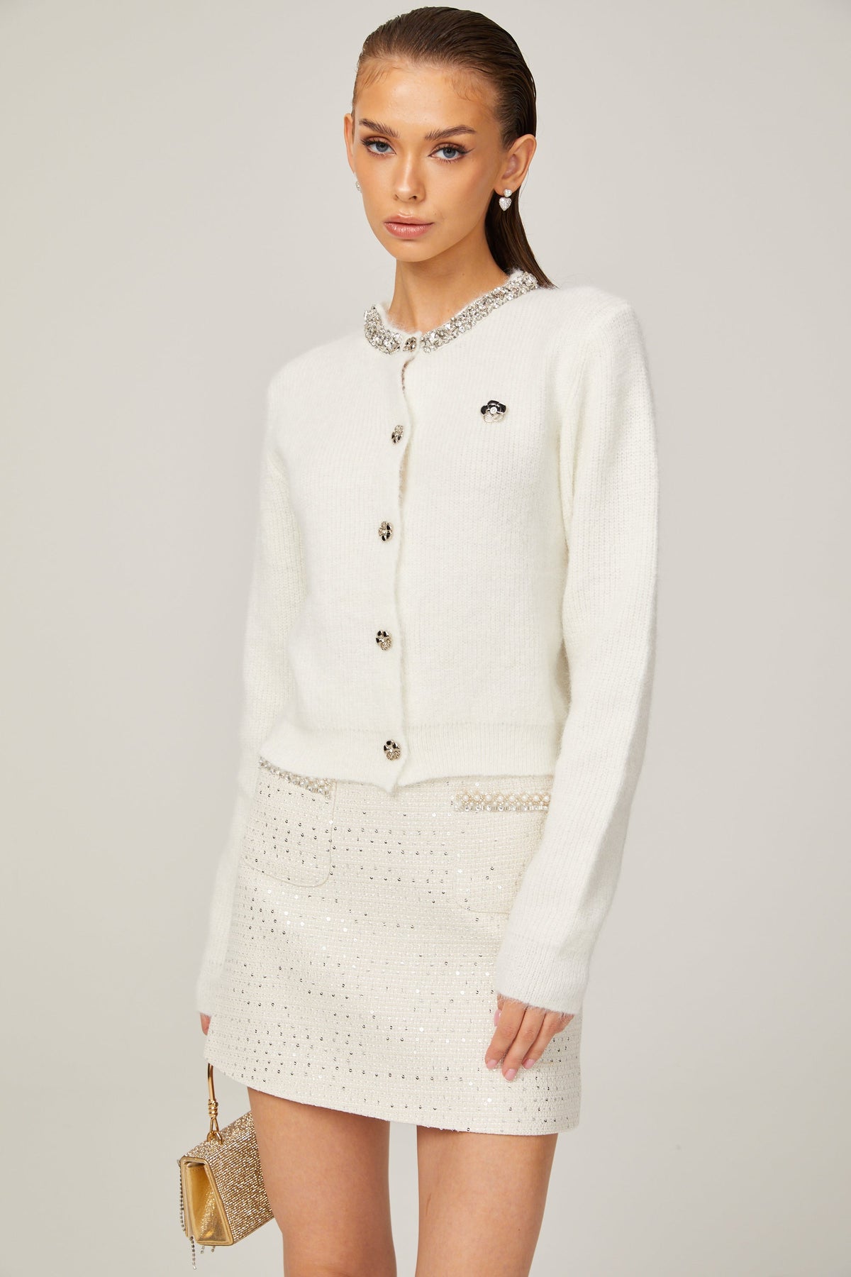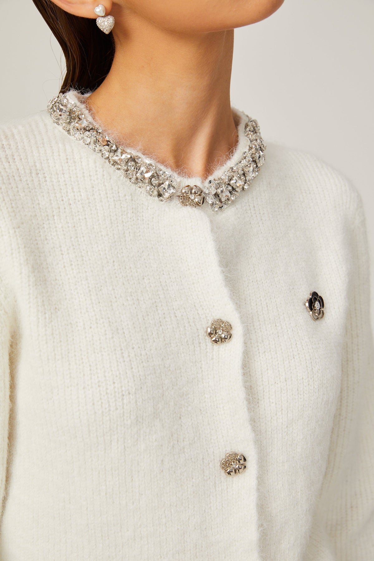 Désirée Beyaz İnci Süslemeli Örgü Hırka