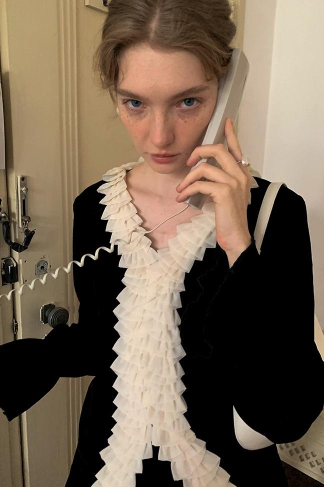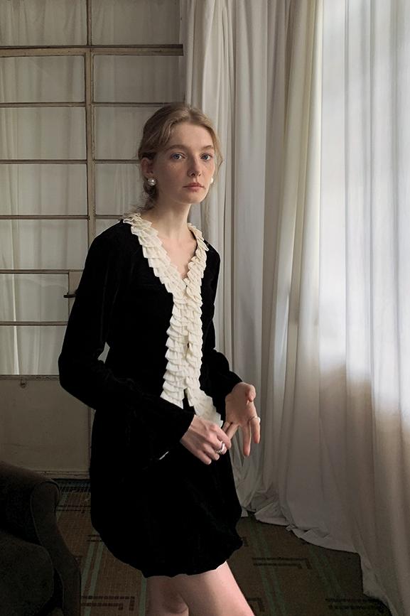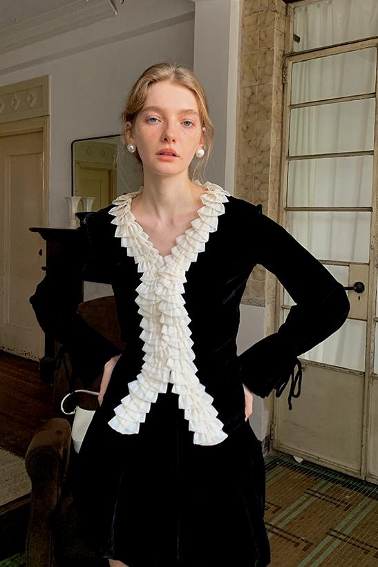 Esther V Yaka Fırfırlı Hırka
