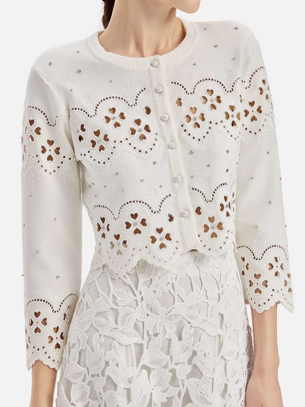 Dantel Nakışlı El Süslemeli Örgü Hırka
