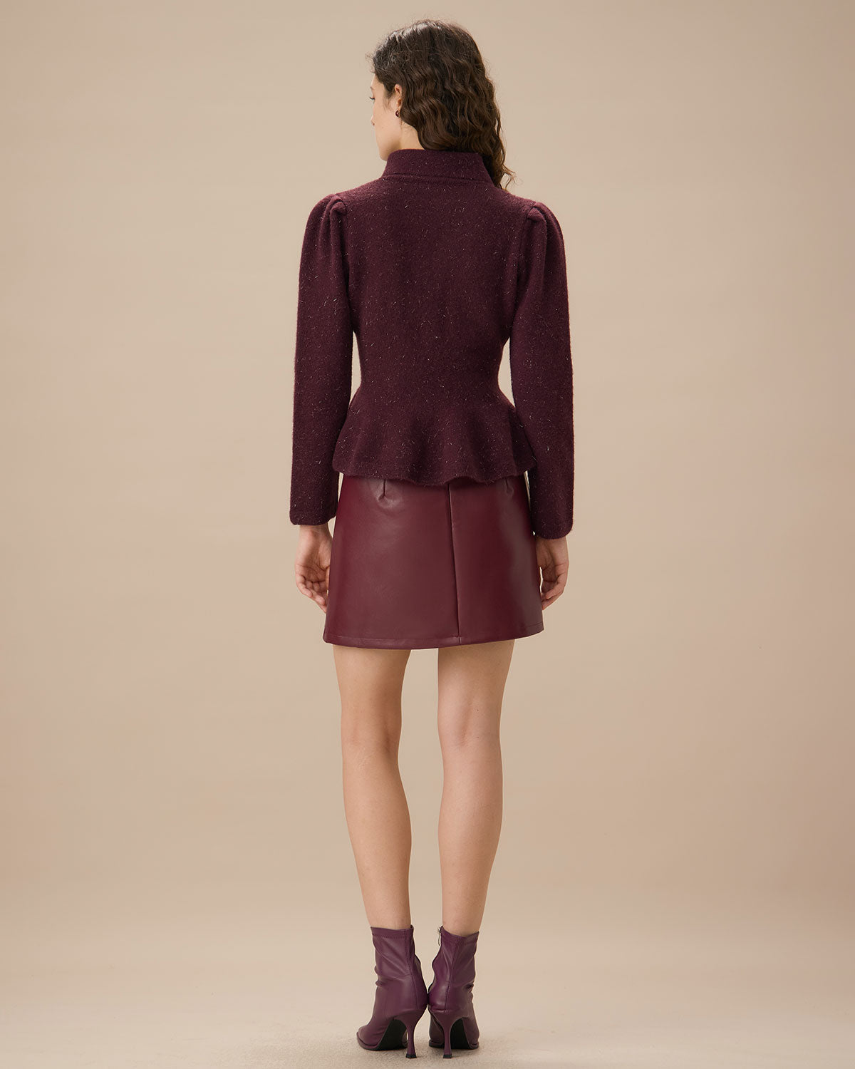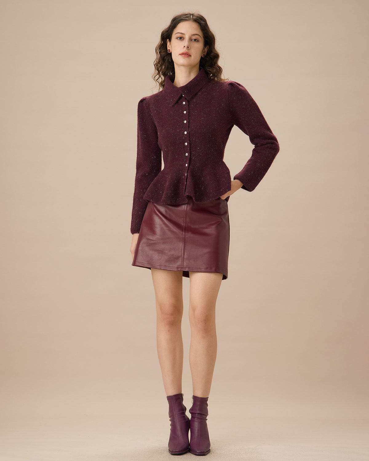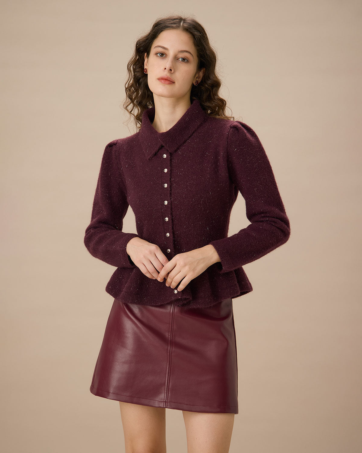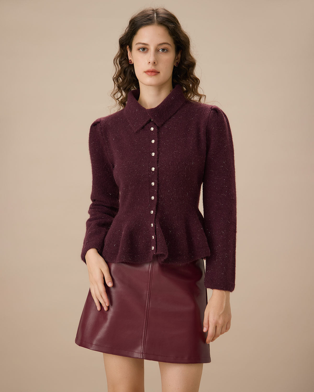 Mor Yaka Tek Düğmeli Fırfırlı Hırka