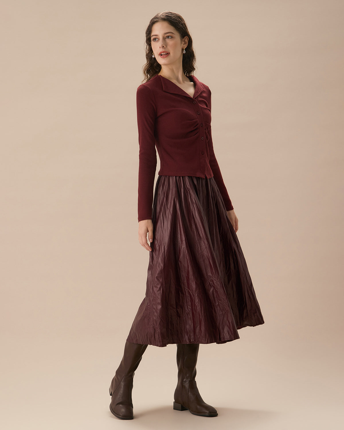 Kırmızı Fırfırlı Tek Düğmeli Hırka