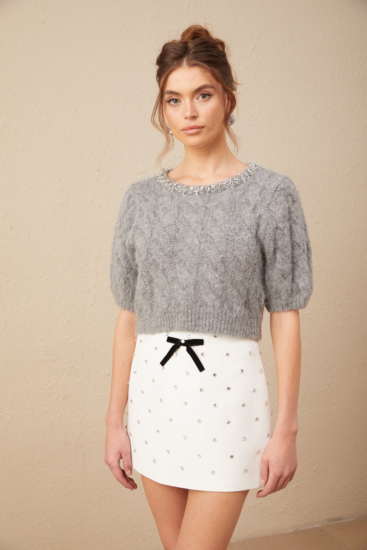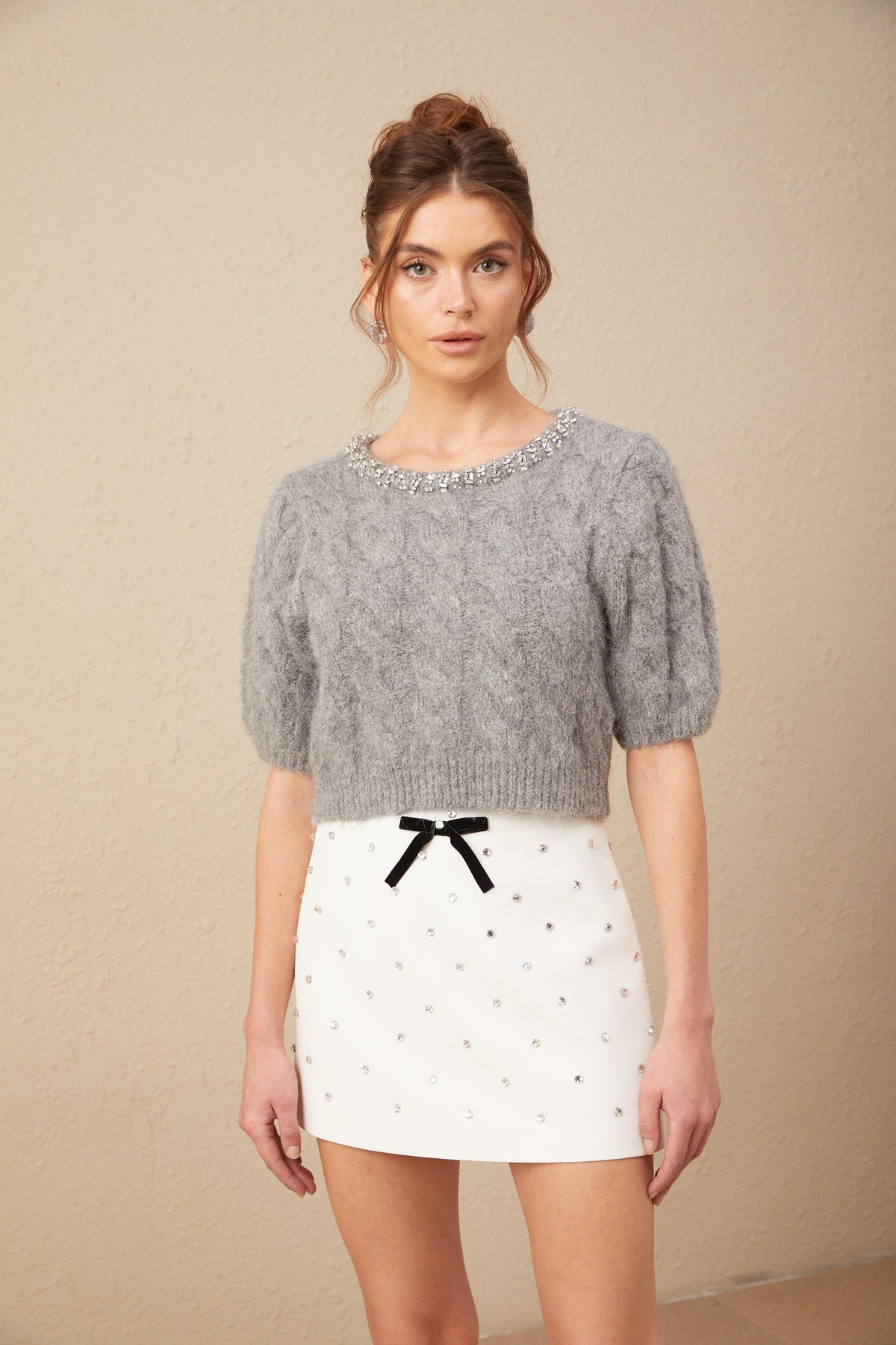 Ophélie Süslenmiş Kablo Örgülü Kısa Tiftik Kazak