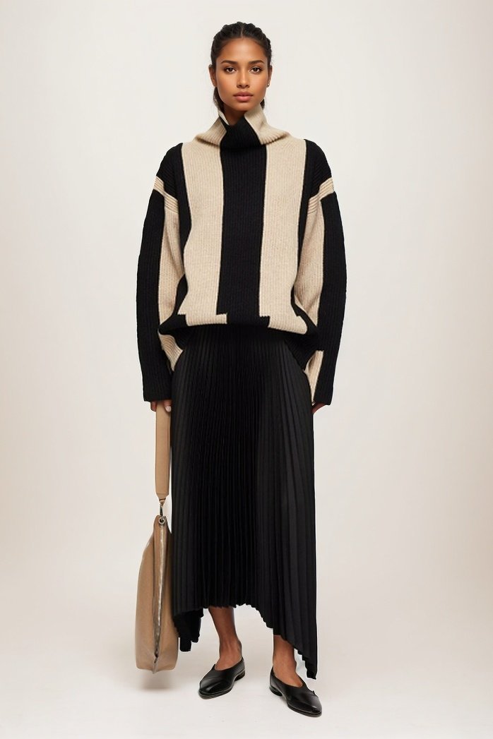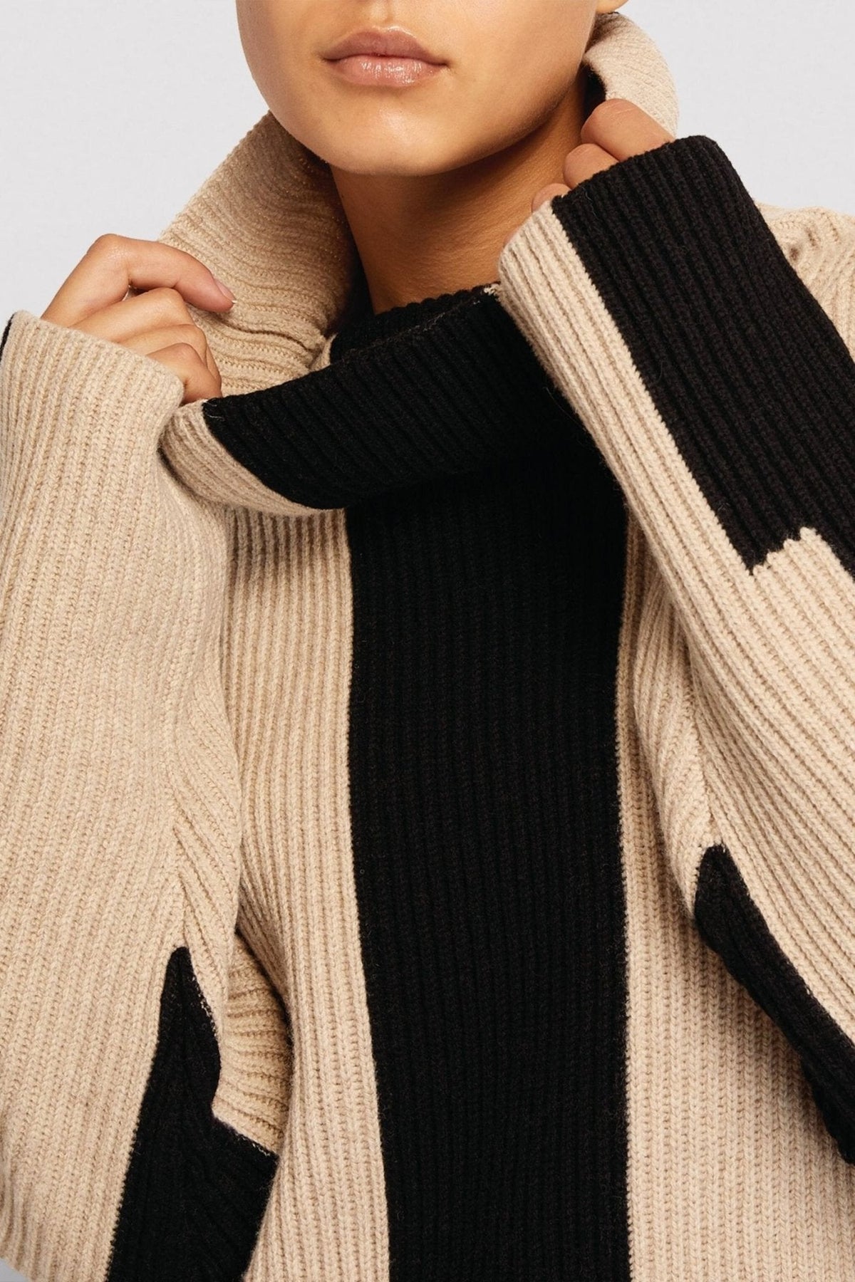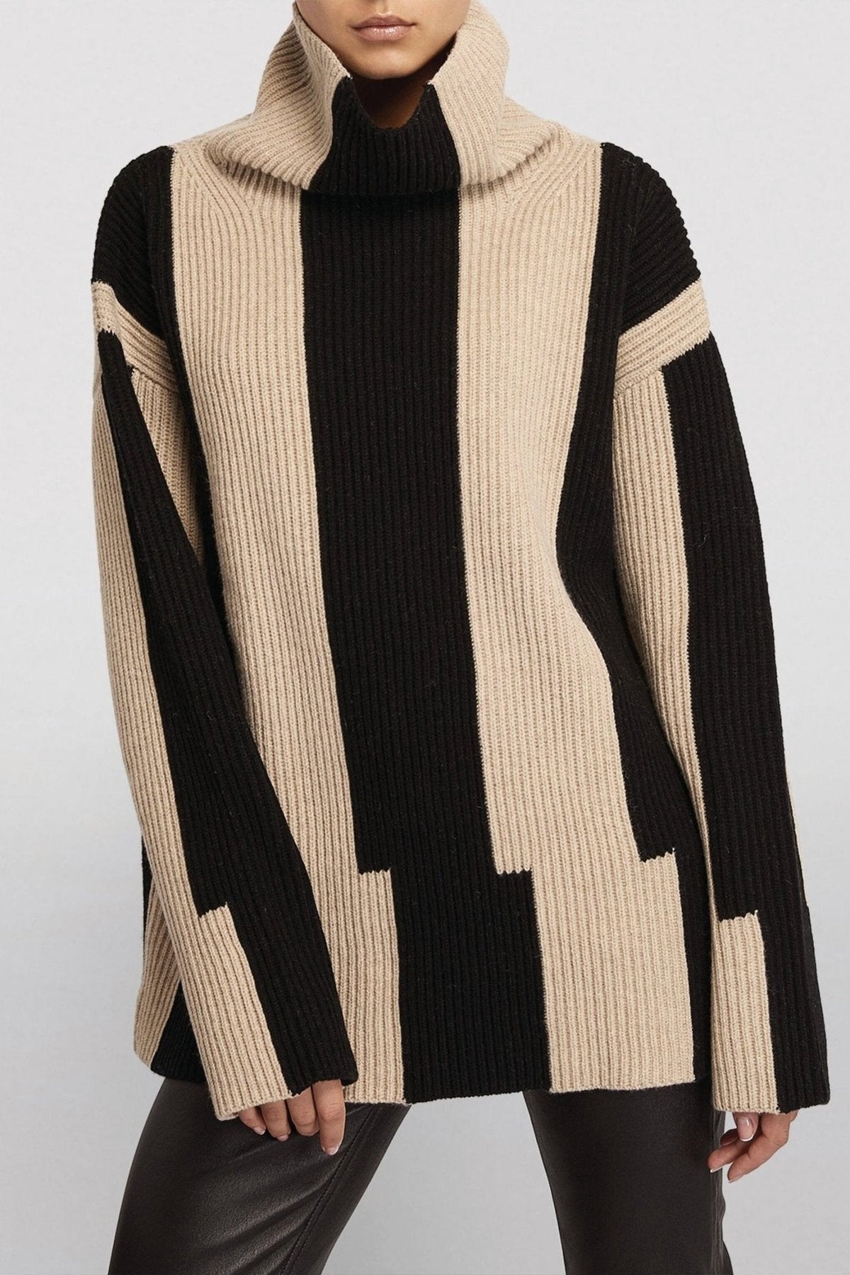 Penelope Yüksek Yaka Renkli Bloklu Kazak