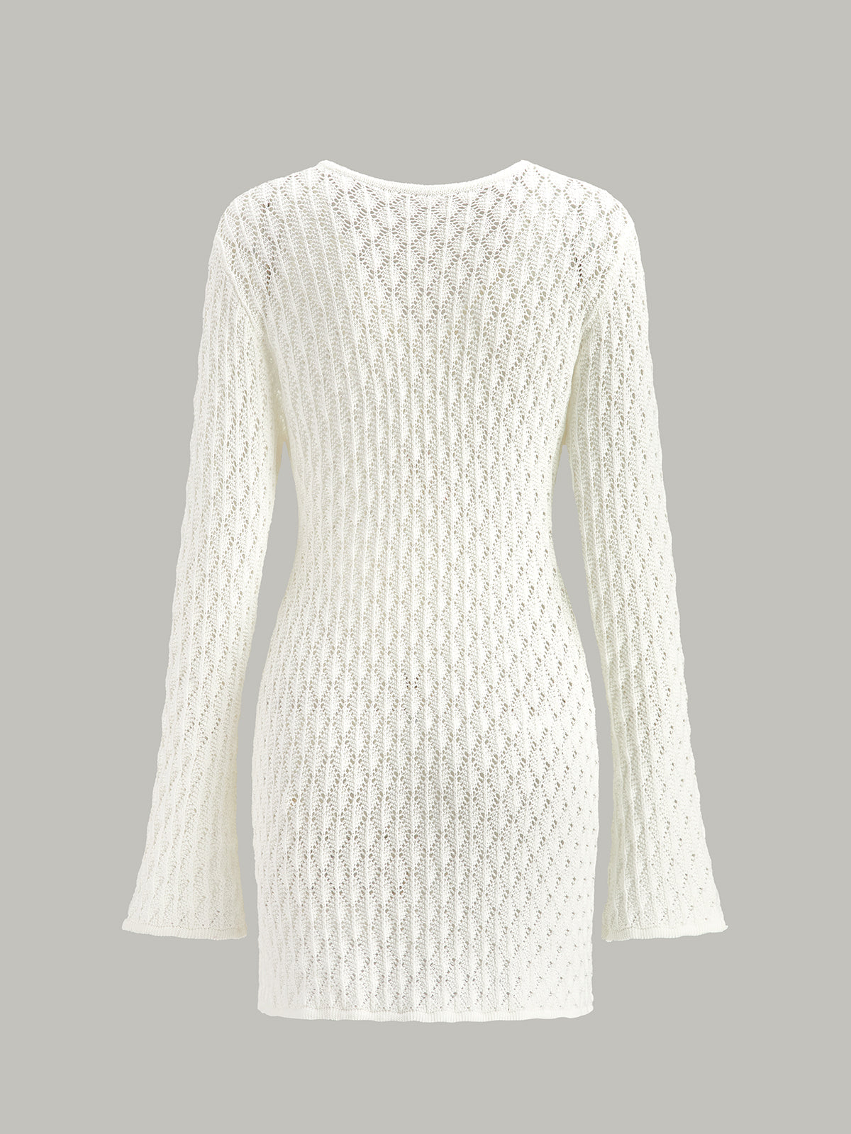 Kesik Detaylı Şeffaf Örgü Kazak Elbise