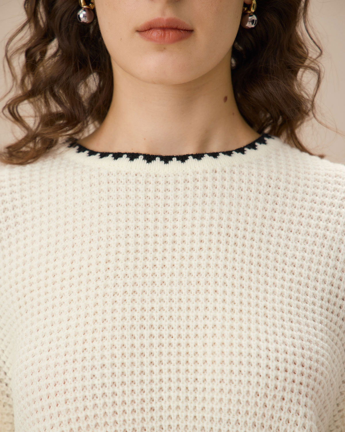 Açıklama: Yumuşak ve rahat bir kumaş karışımından üretilen bu kazak, modern bir dokunuş katan kontrast manşetlere sahip şık dantel kollara sahiptir. Nötr bej tonu, kot pantolonlar, etekler veya taytlarla kolayca kombinlenmesini sağlar ve rahat ama şık bir görünüm sunar. Rahat kesimi, gün boyu konfor sağlarken, zarif detayları hem gündelik hem de daha şık etkinlikler için uygundur.
