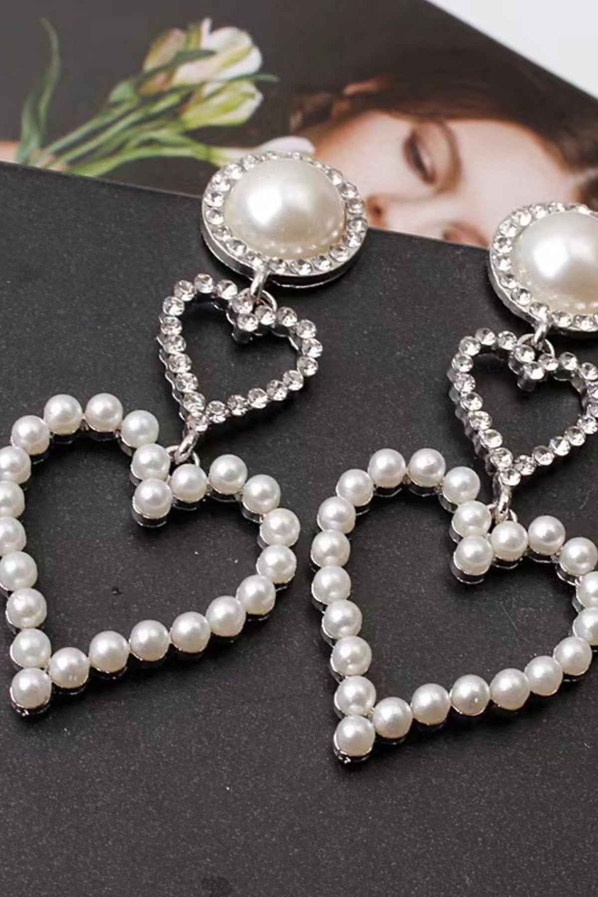 İnci İlmekli Kalp Küpe