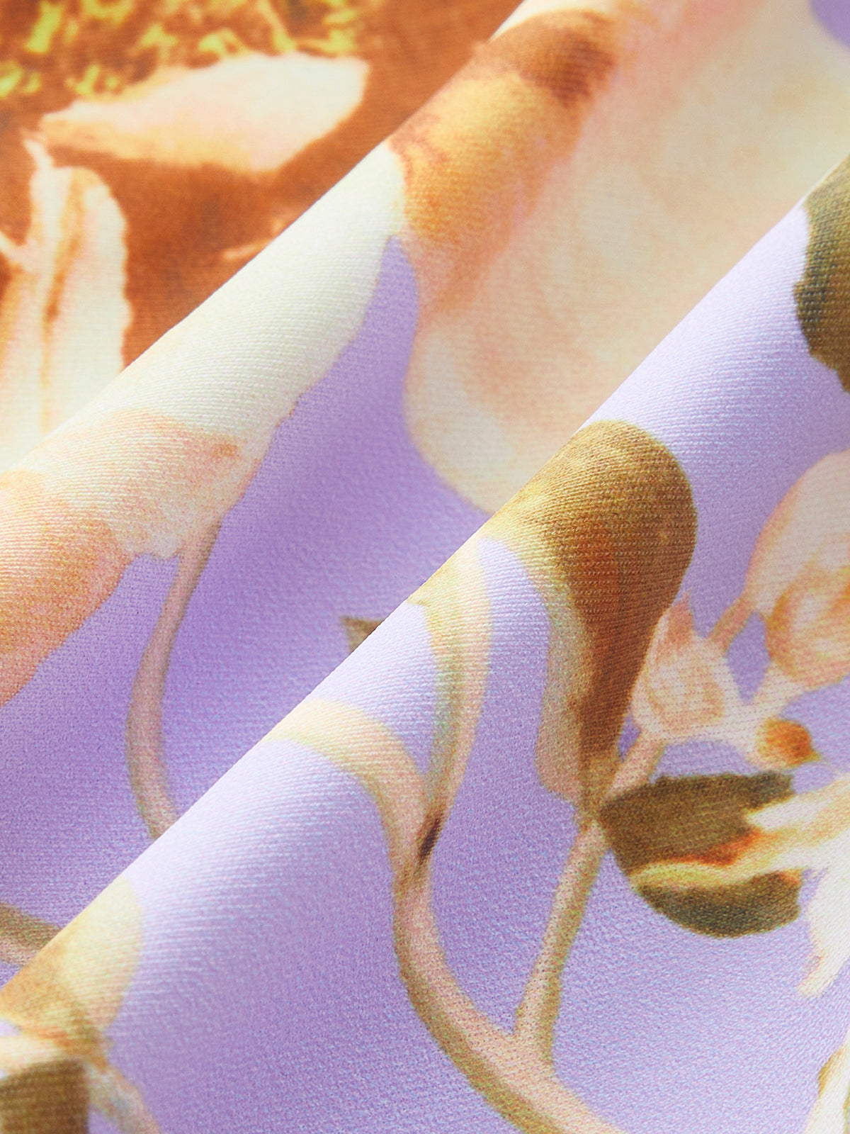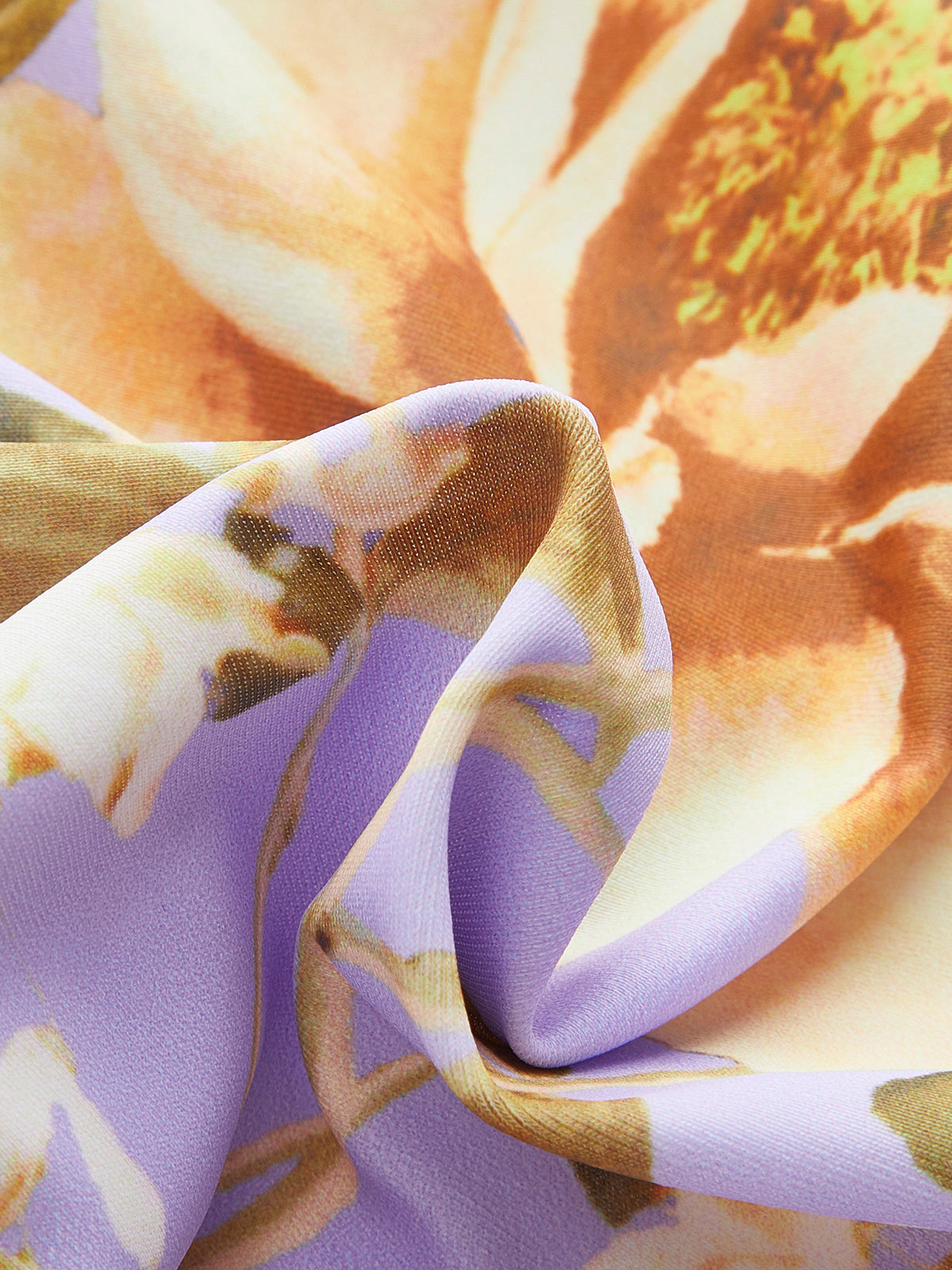 Baskılı Kesikli Fiyonklu Spagetti Askılı Tek Parça Mayo