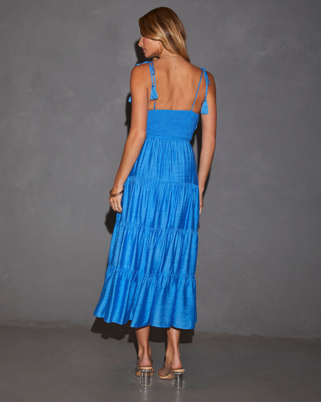 Baylin Omuzdan Bağlamalı Katlı Midi Elbise