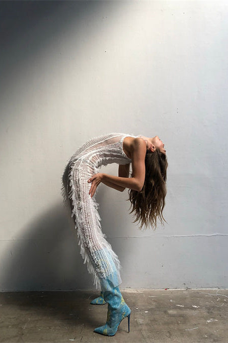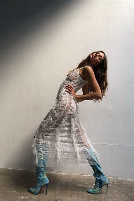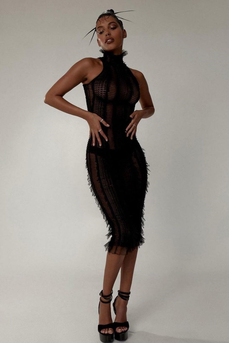 Bonnie Balıkçı Yaka Fırfırlı Midi Elbise