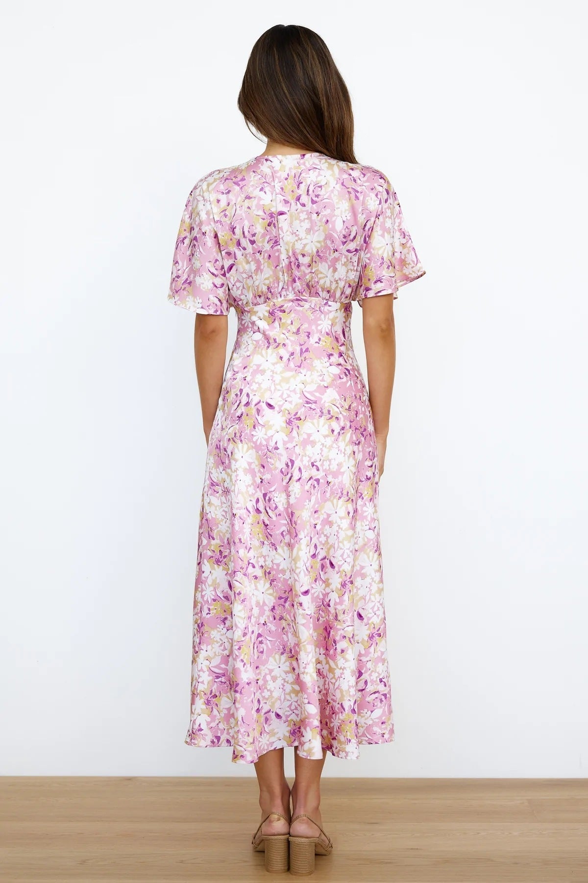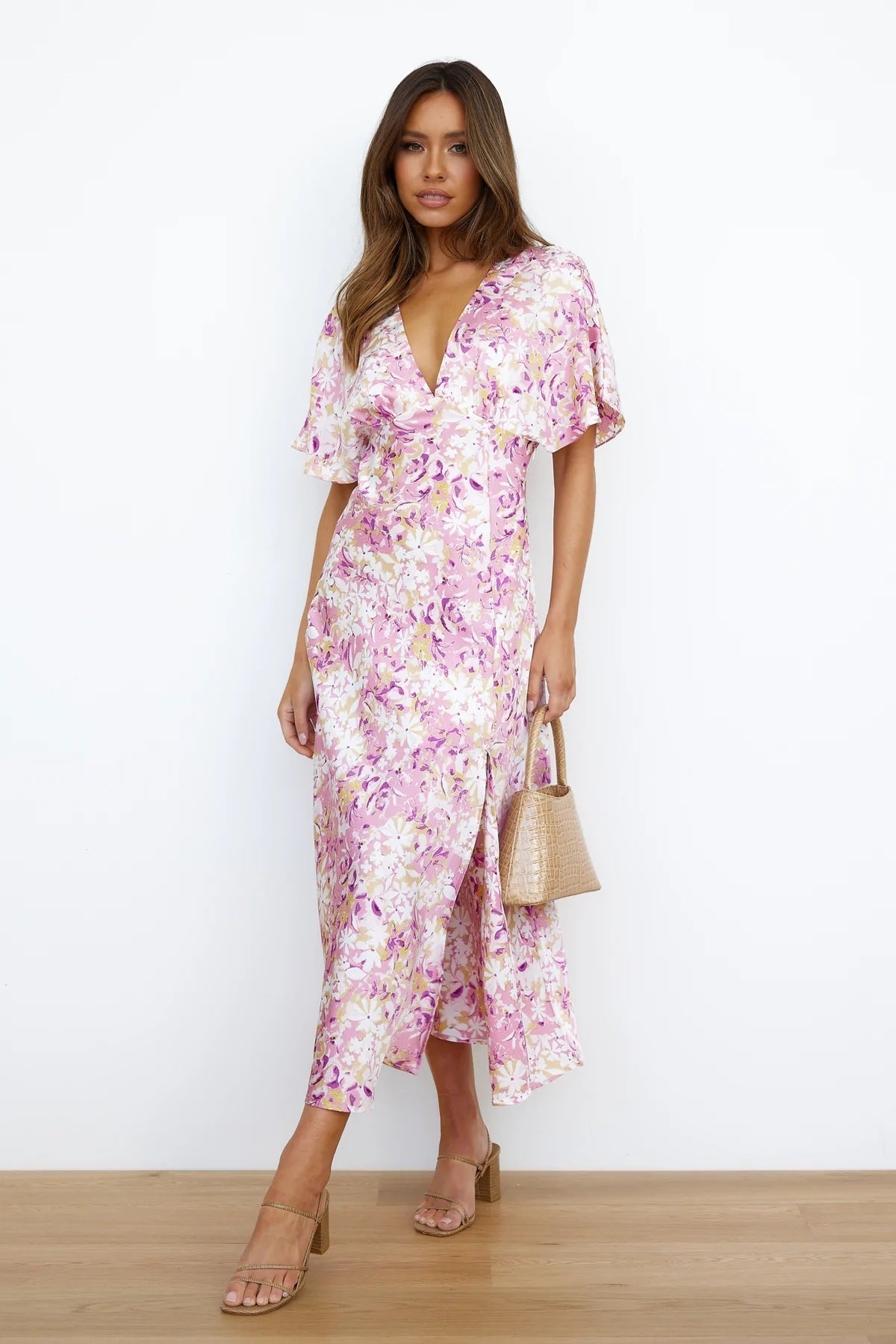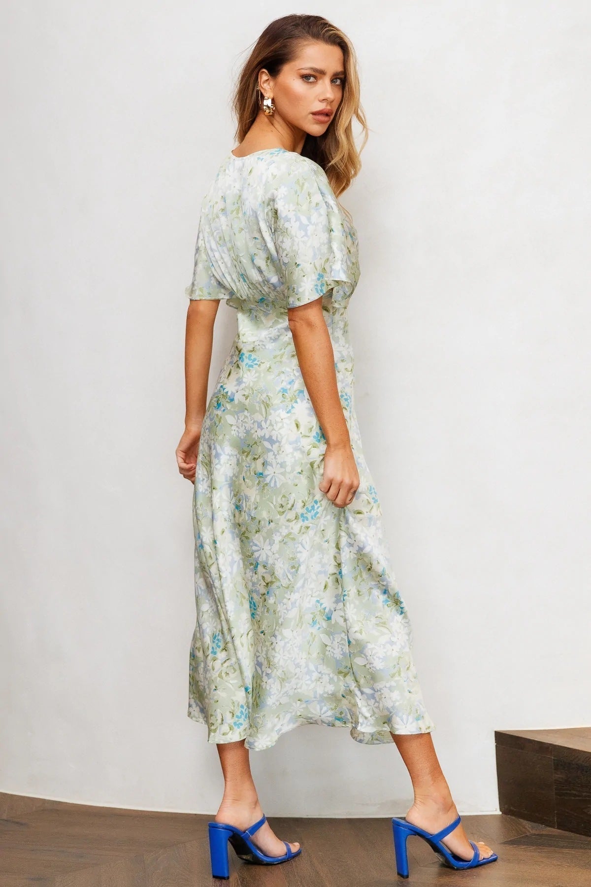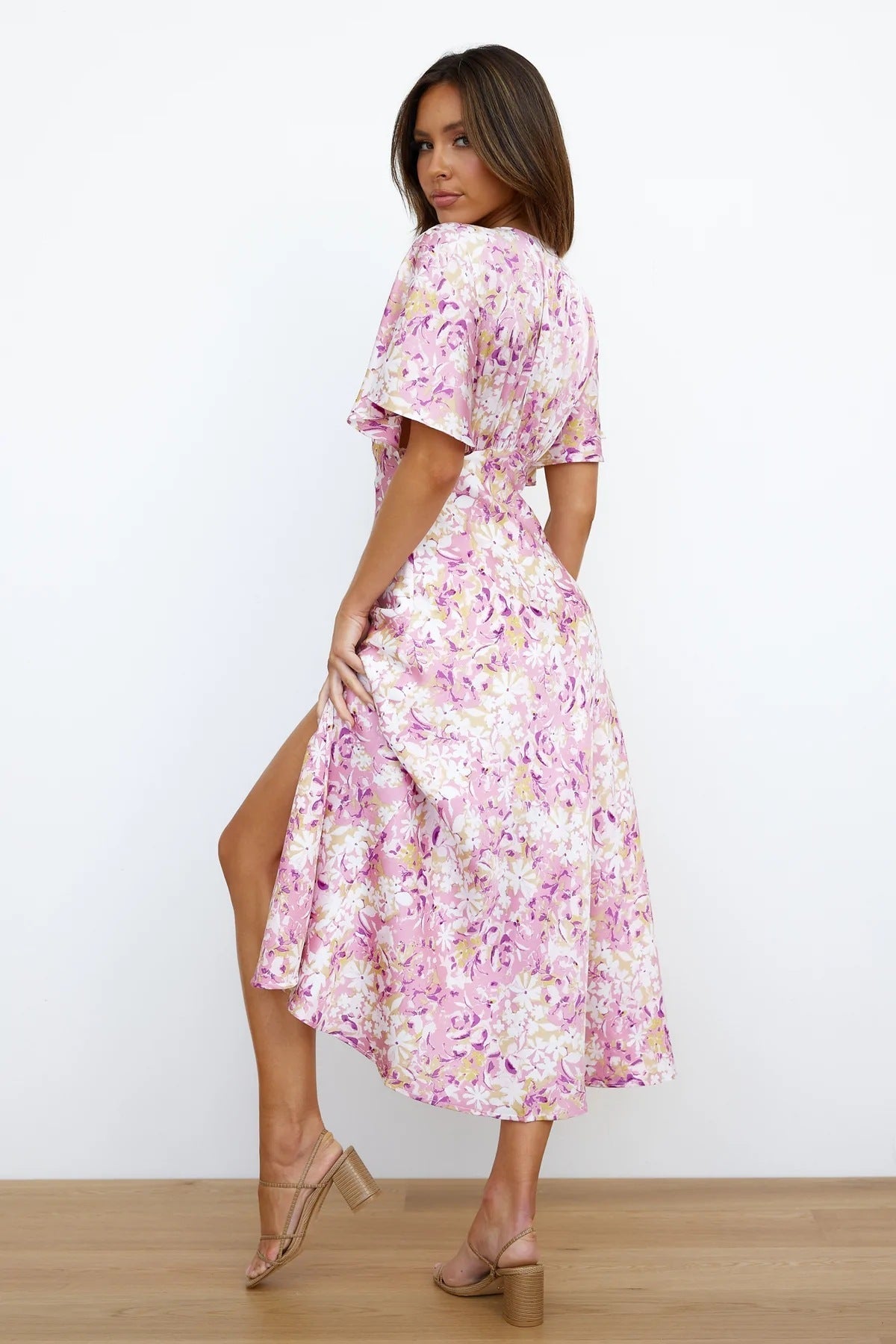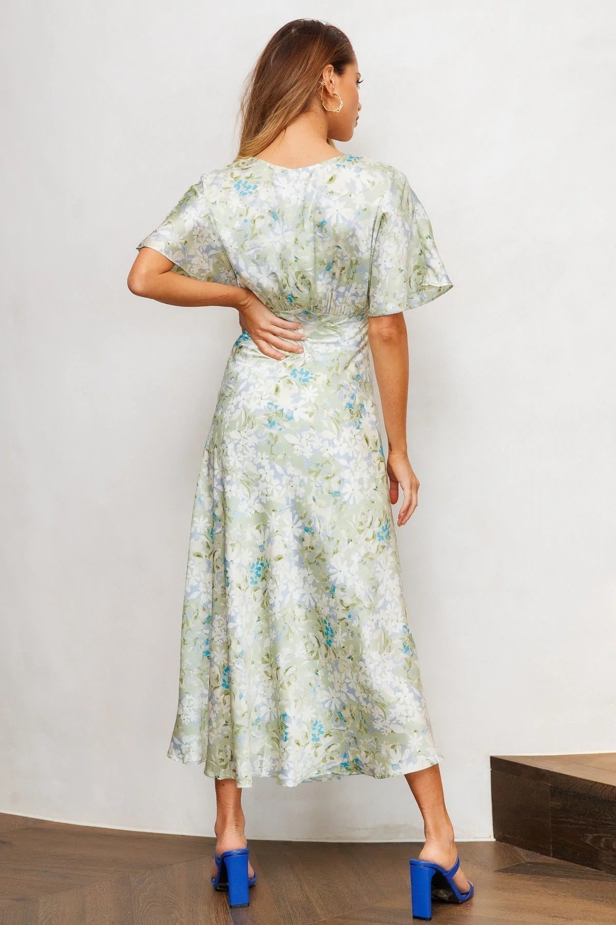 Carlin Baskılı V Yaka Yırtmaçlı Midi Anvelop Elbise