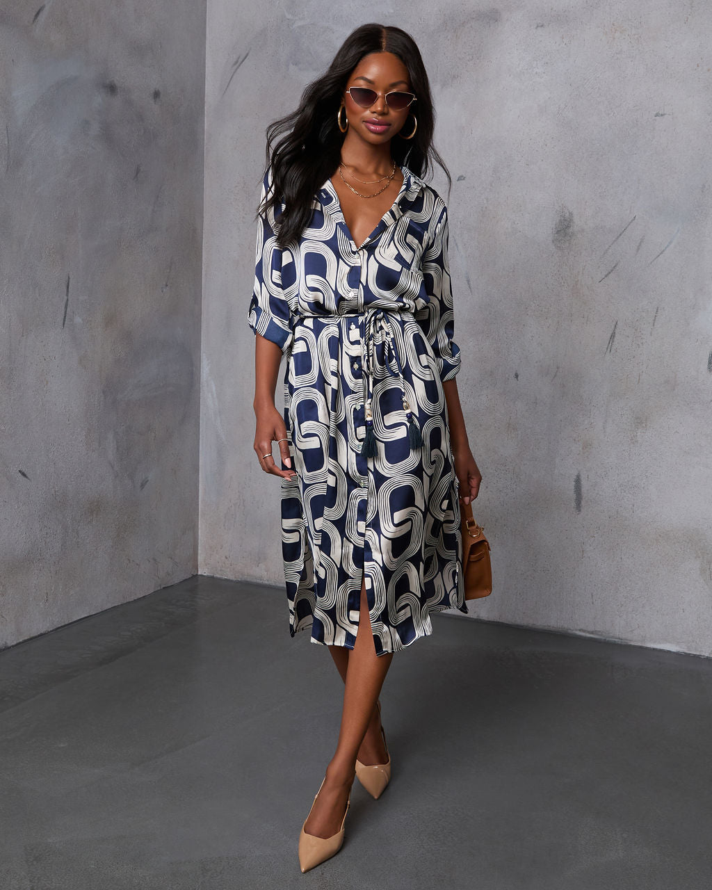 Chantel Belden Bağlamalı Baskılı Midi Elbise
