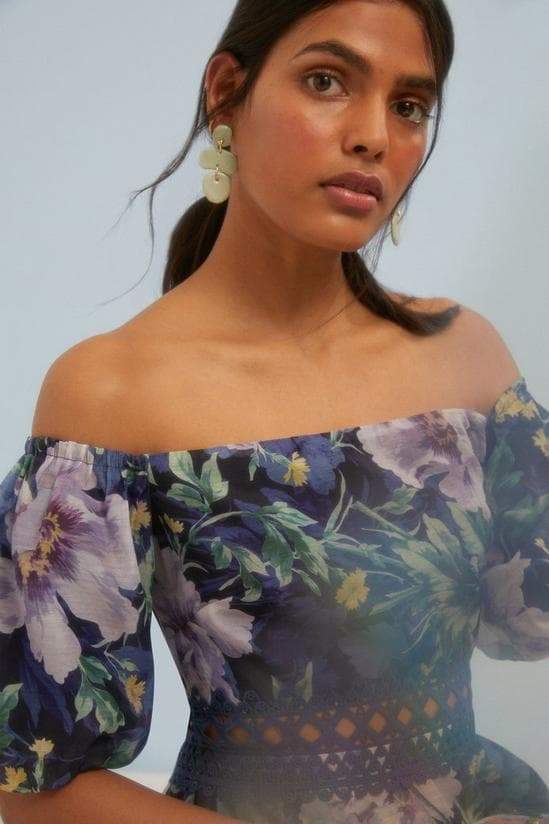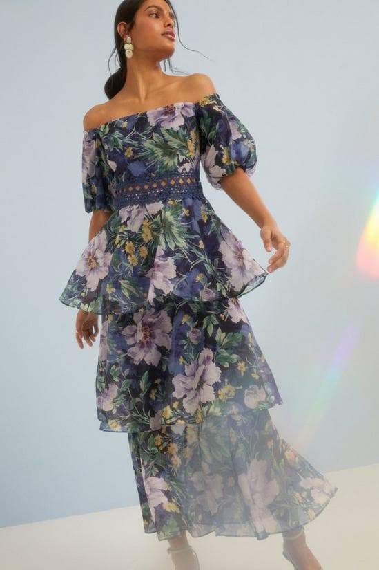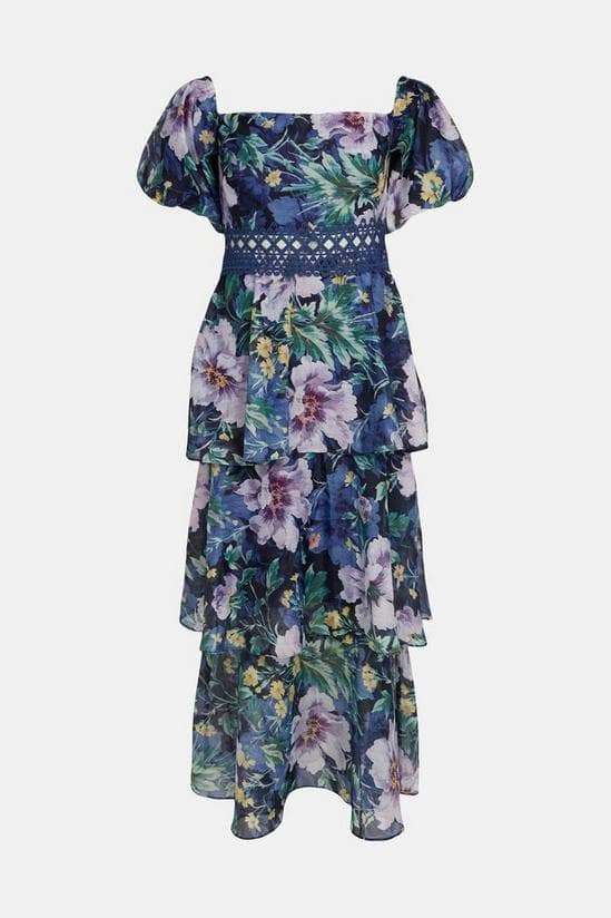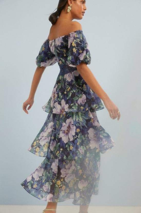 Cynthia Çiçekli Dantelli Katlı Midi Elbise