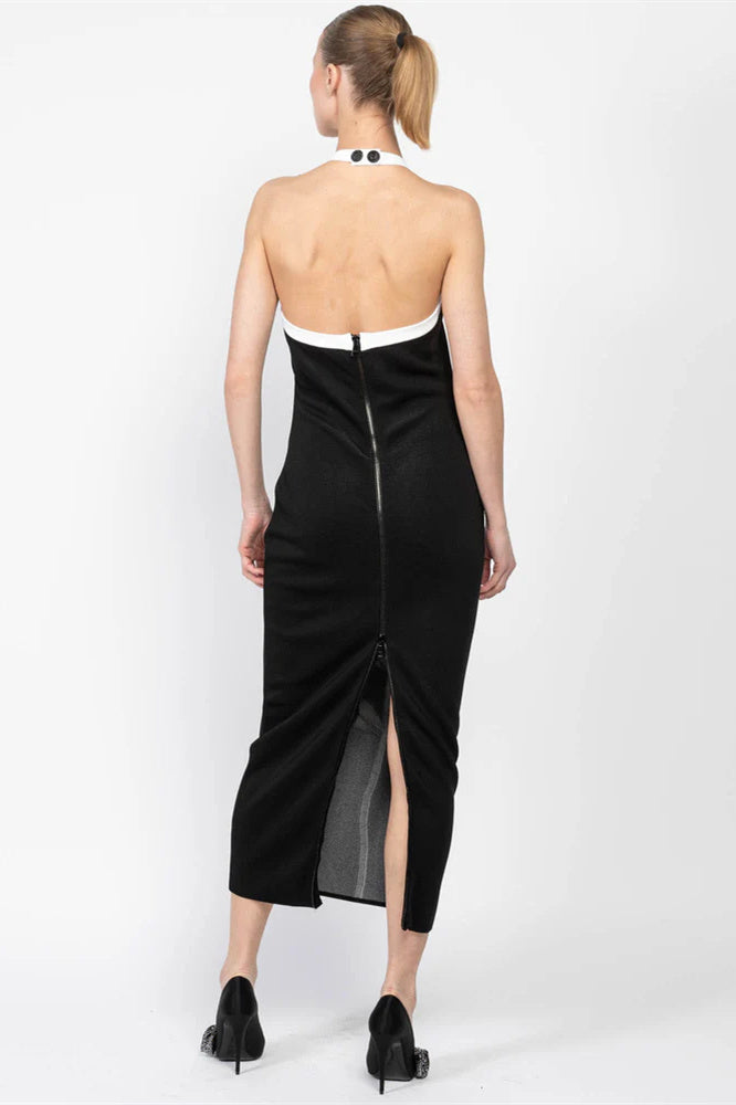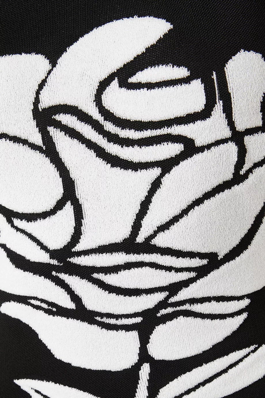 Darlene Boyundan Bağlamalı Çiçekli Sırtı Açık Midi Triko Elbise