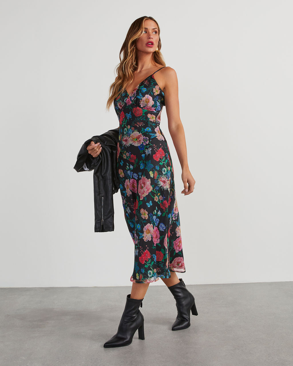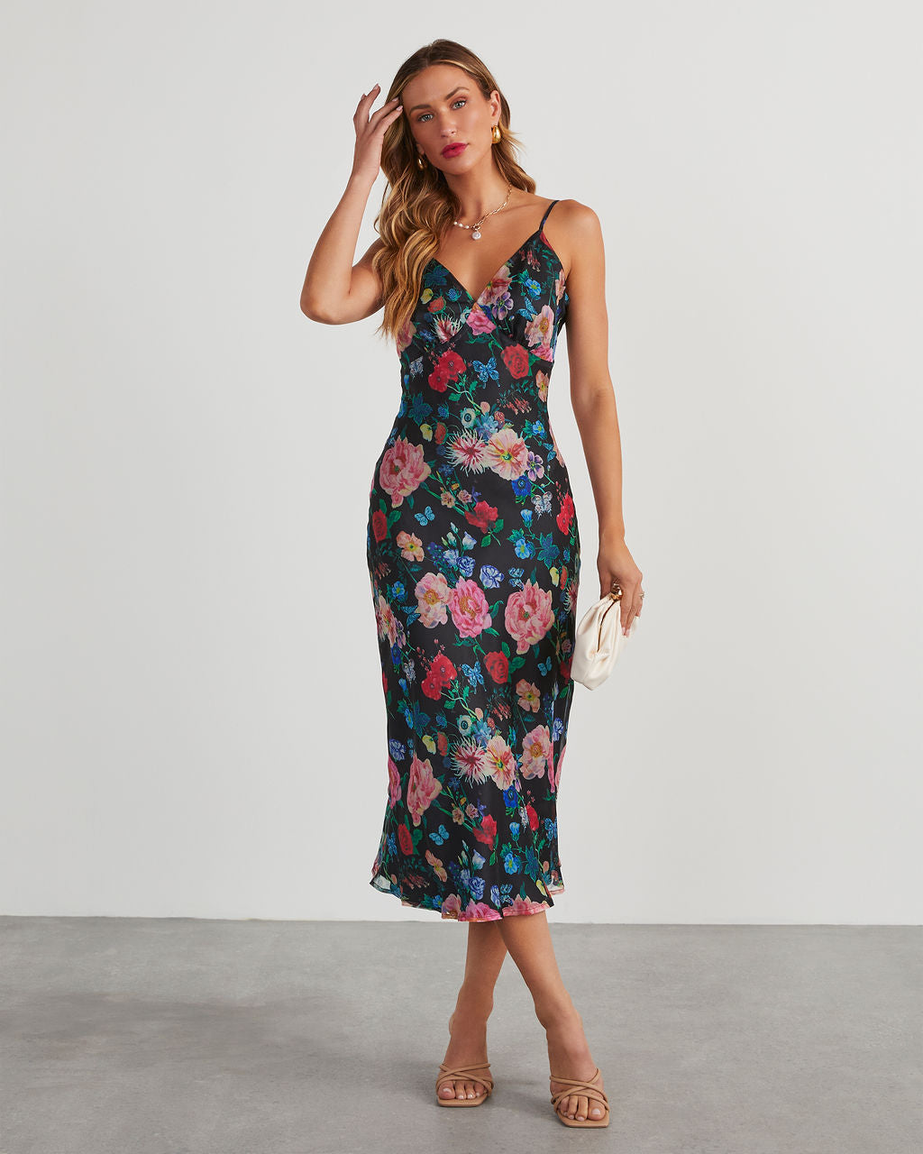 Don'T Go Yet Slip Çiçekli Midi Elbise