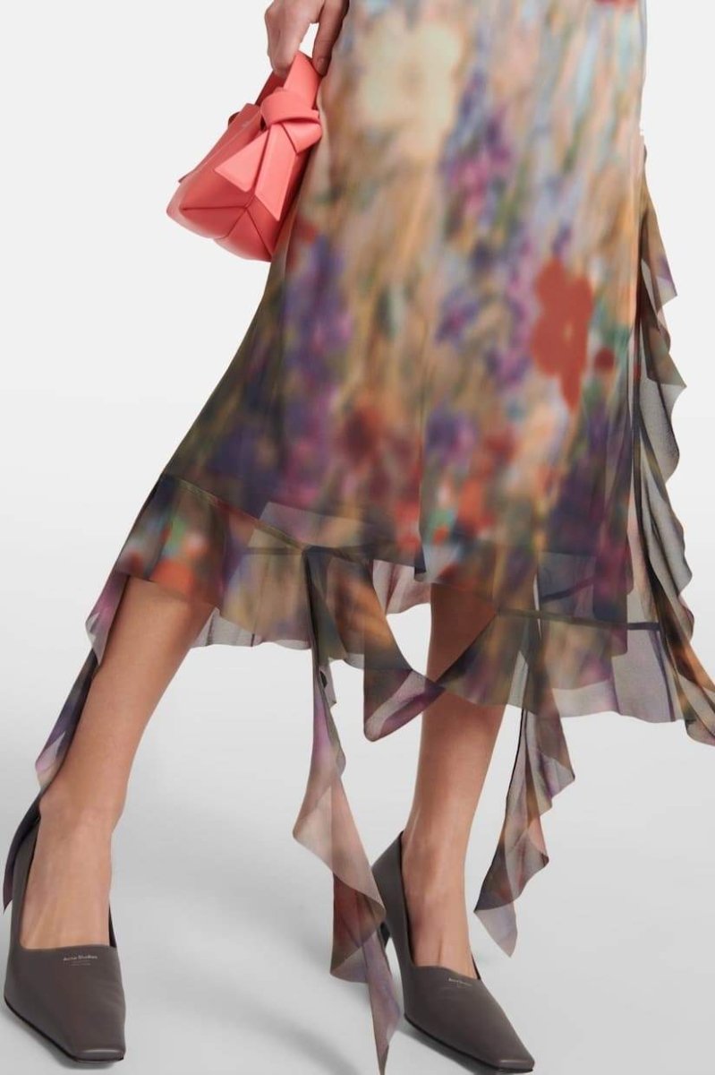 Elvira Çiçek Baskılı Fırfırlı Midi Slip Elbise