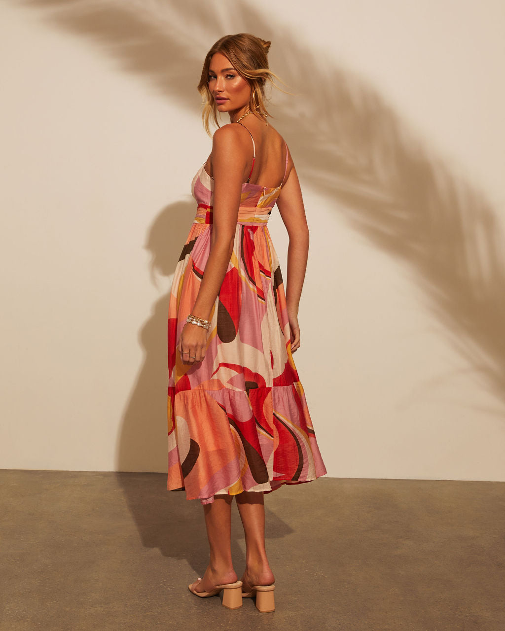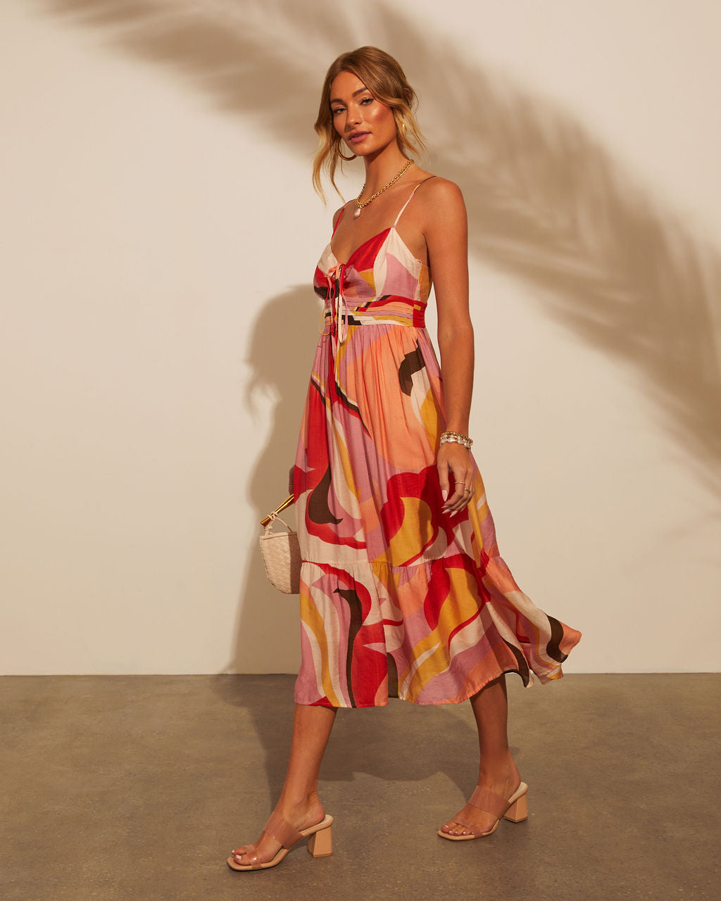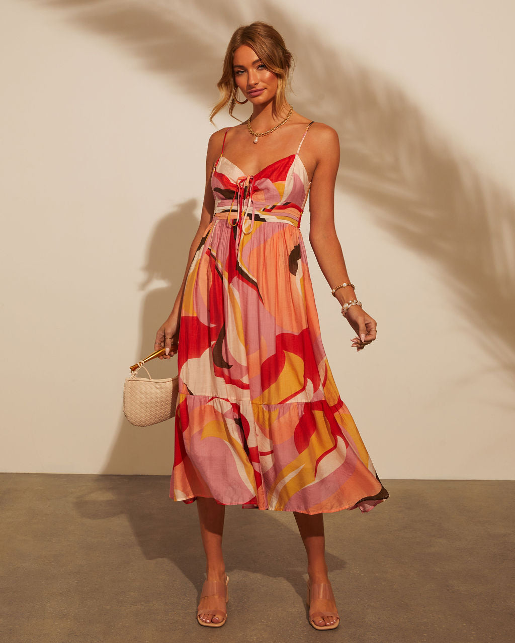 Eudora Baskılı Önü Bağlamalı Midi Elbise