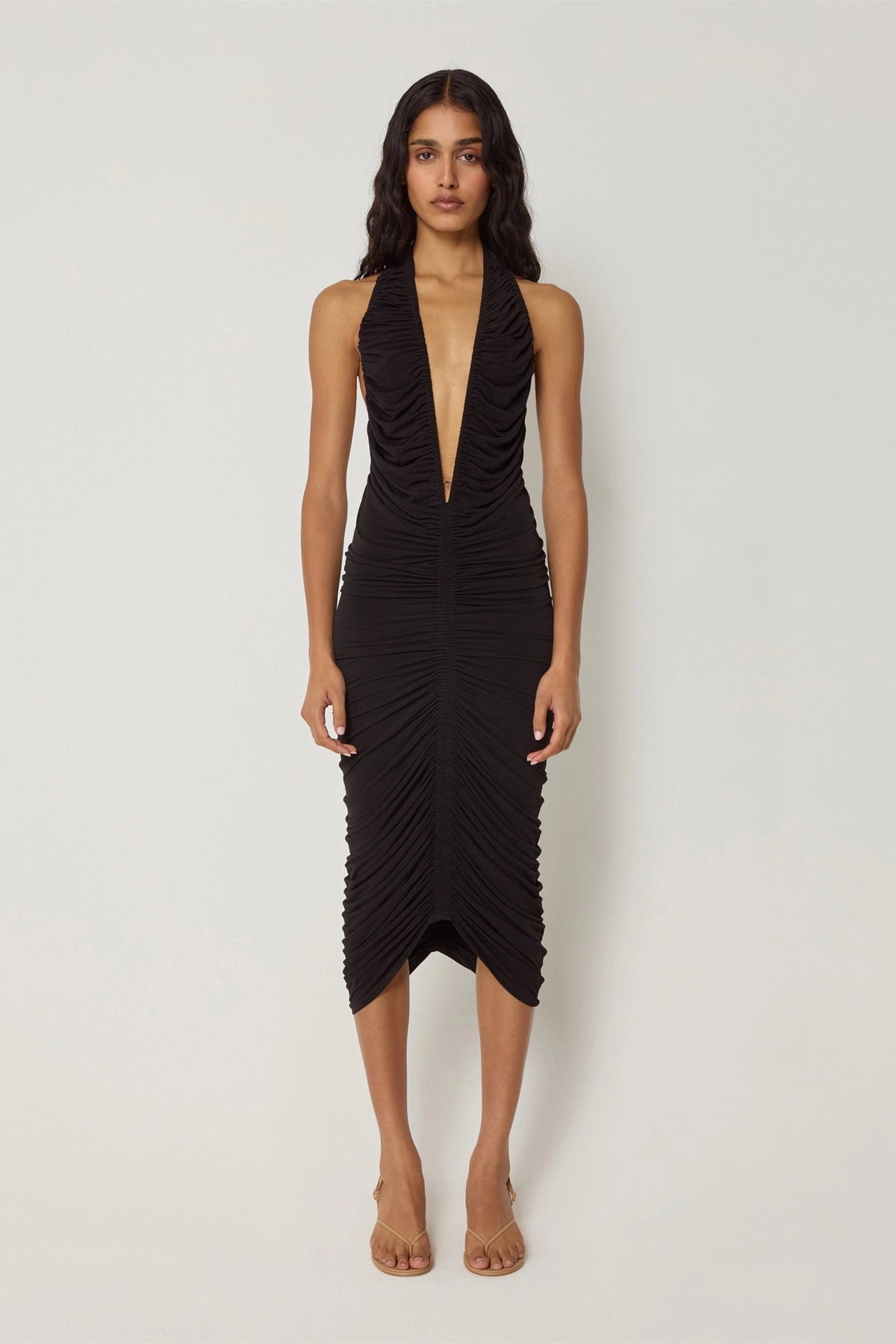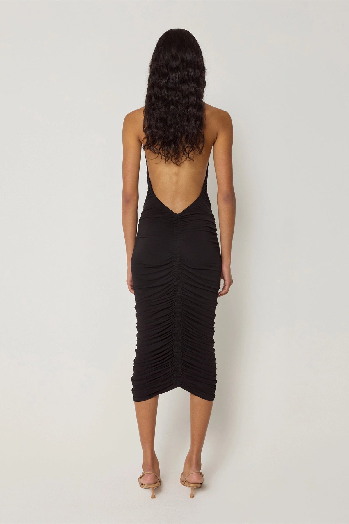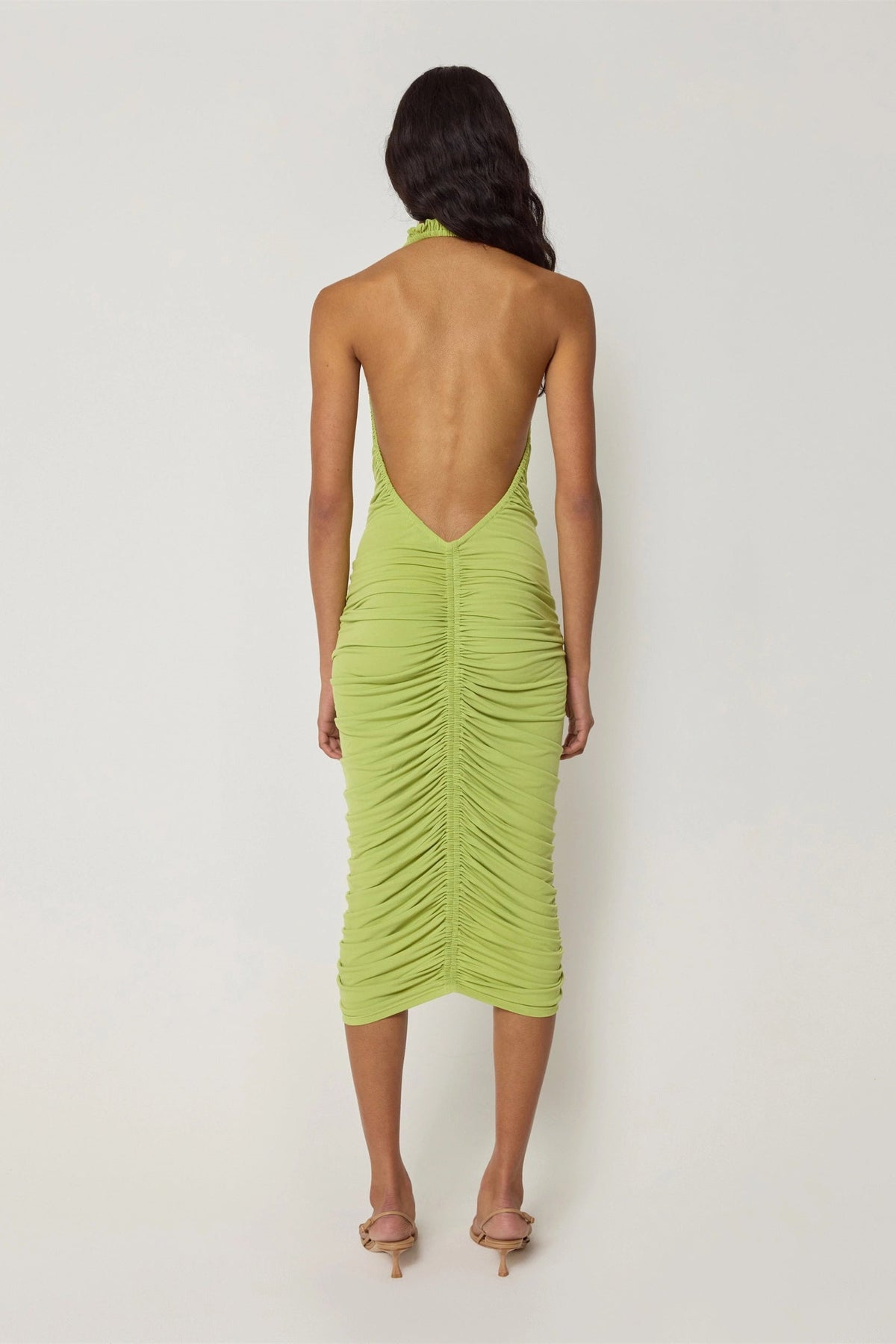Joanna Boyundan Bağlamalı Dantelli Sırtı Açık Midi Elbise