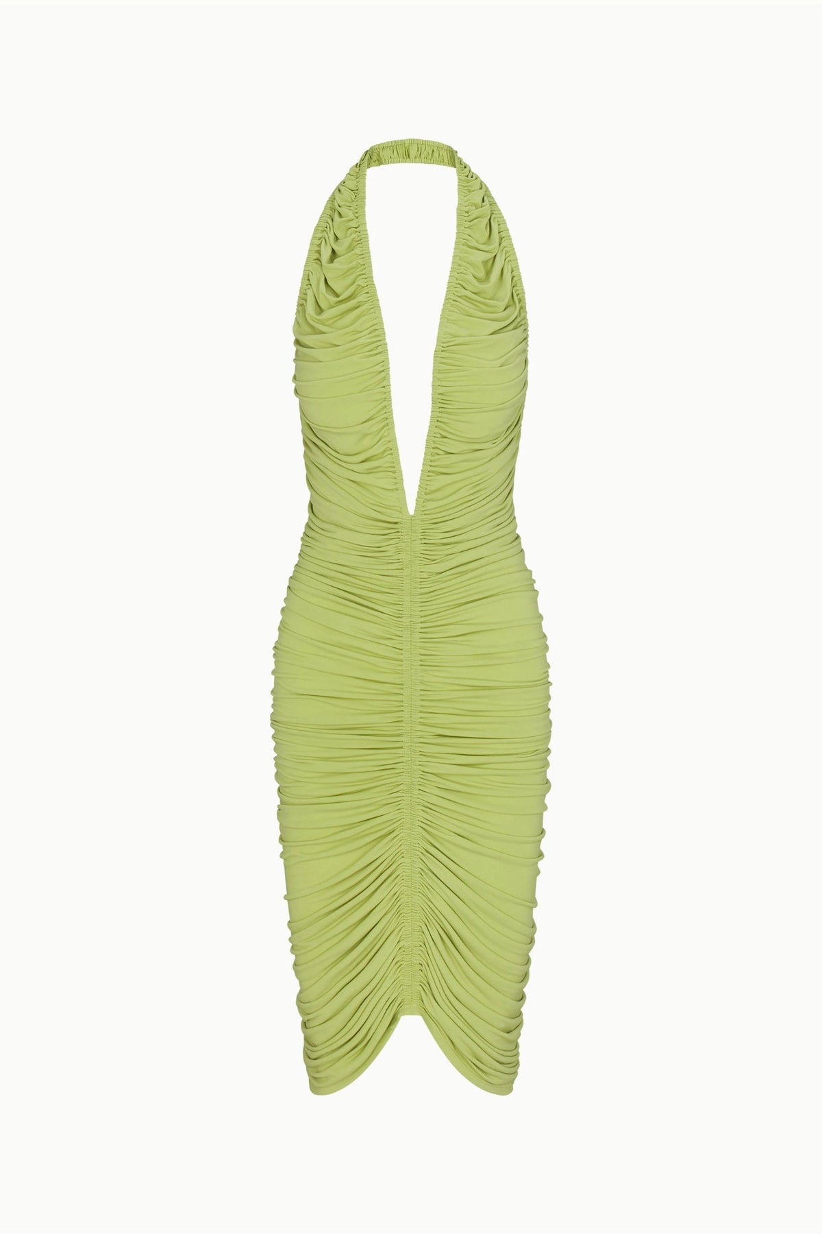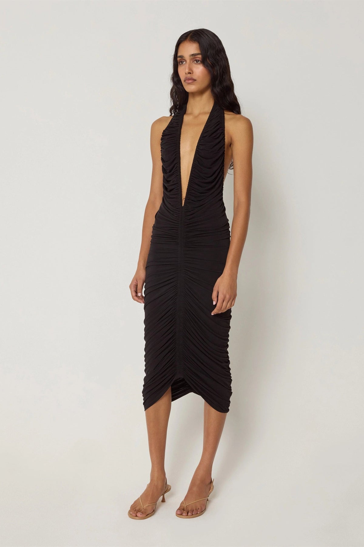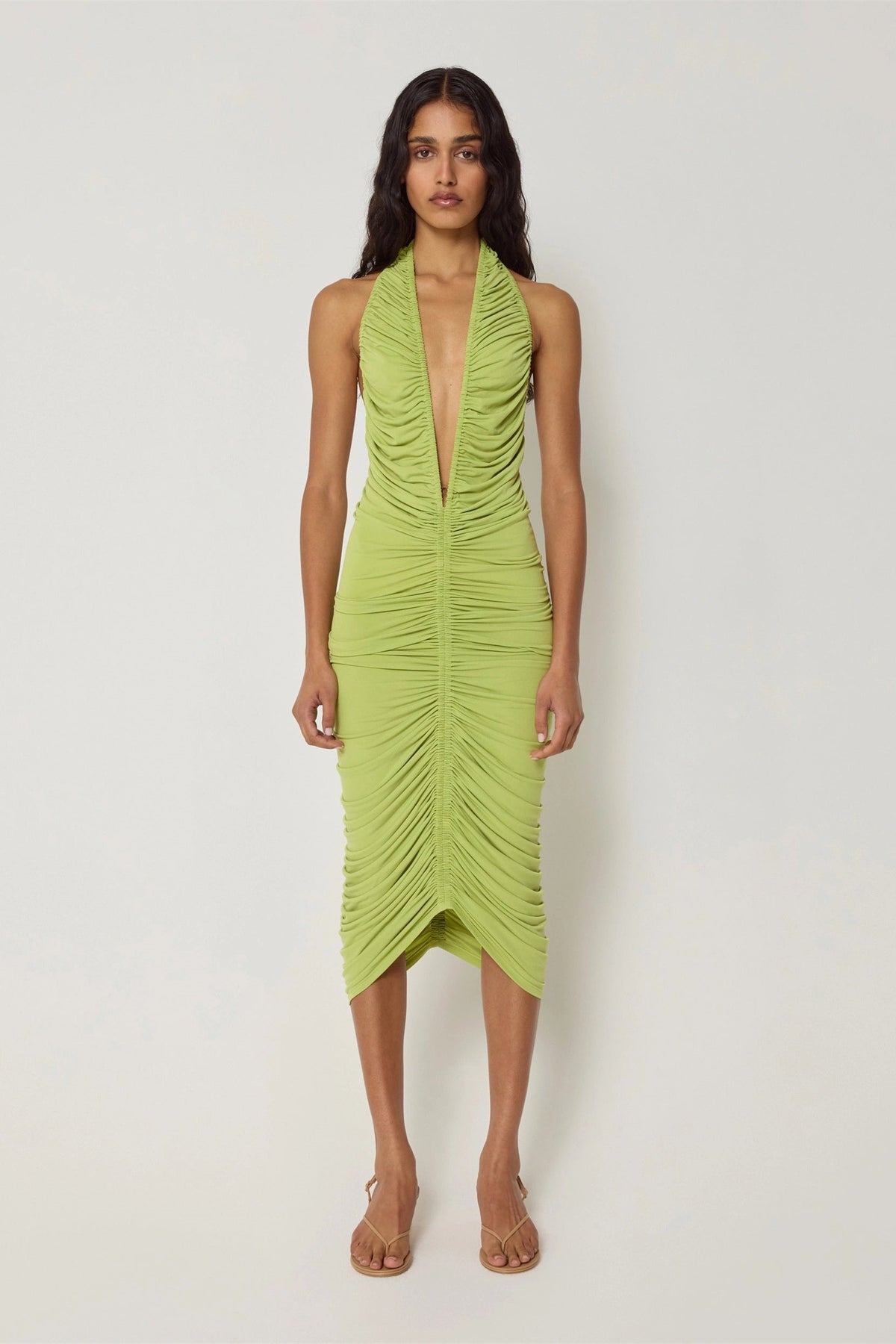 Joanna Boyundan Bağlamalı Dantelli Sırtı Açık Midi Elbise