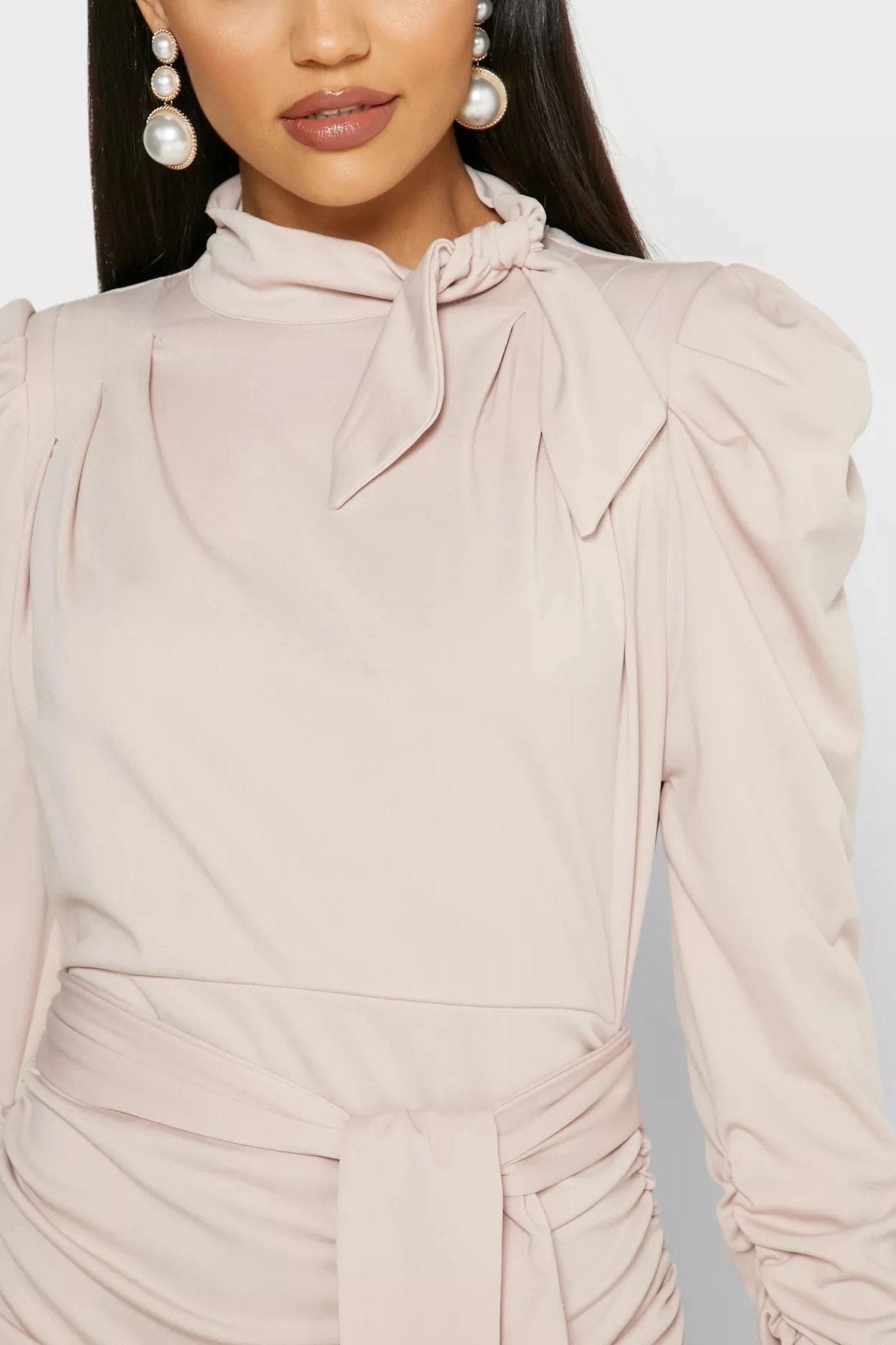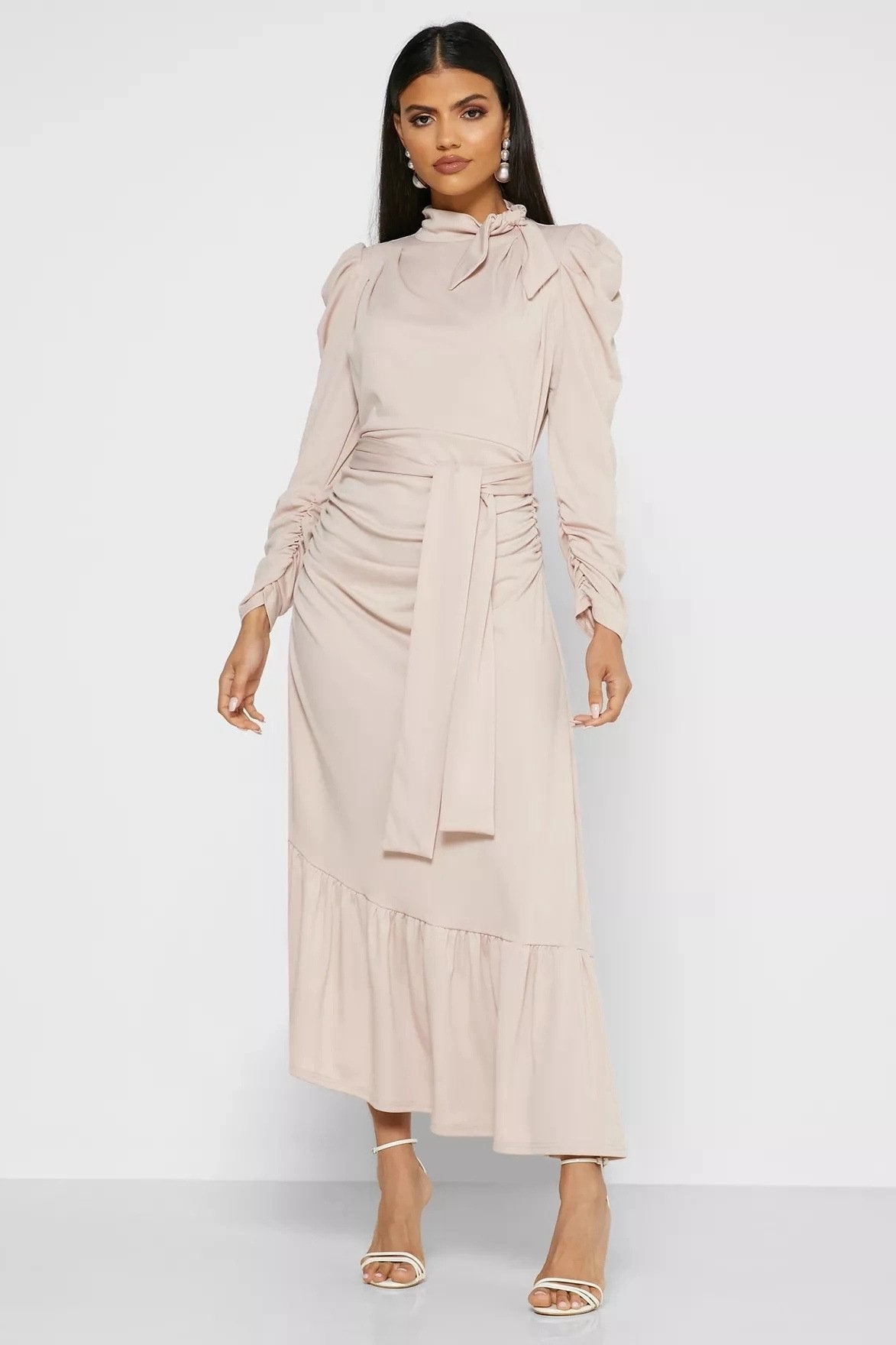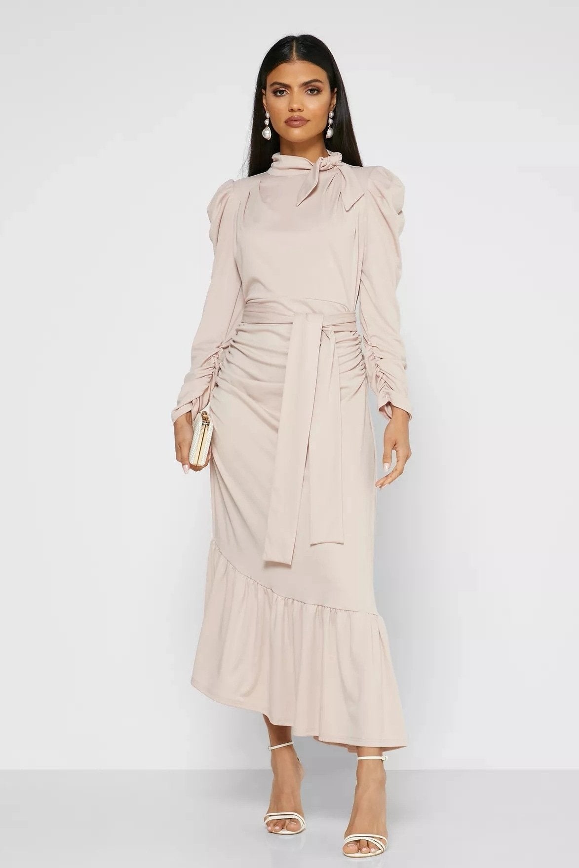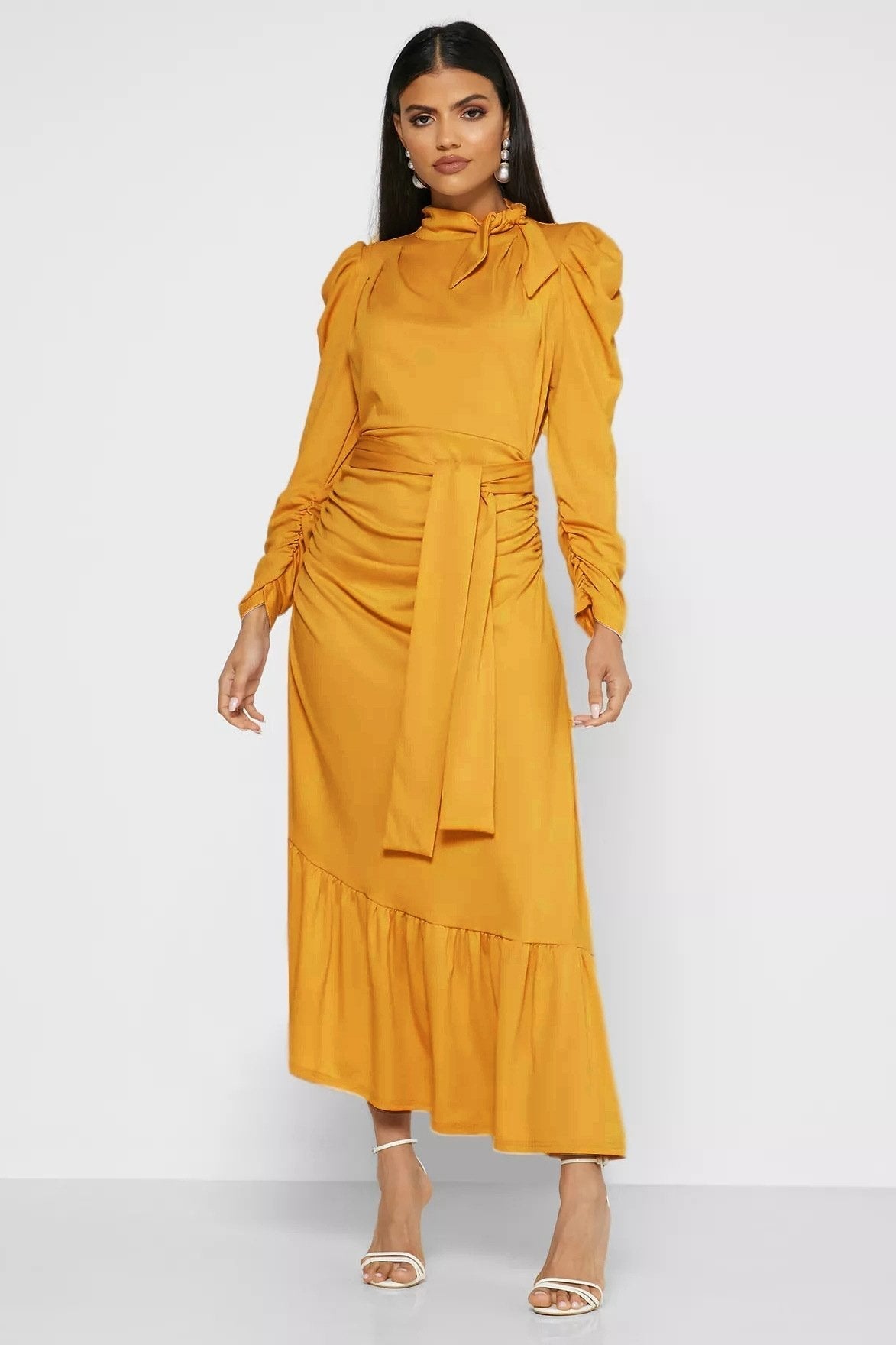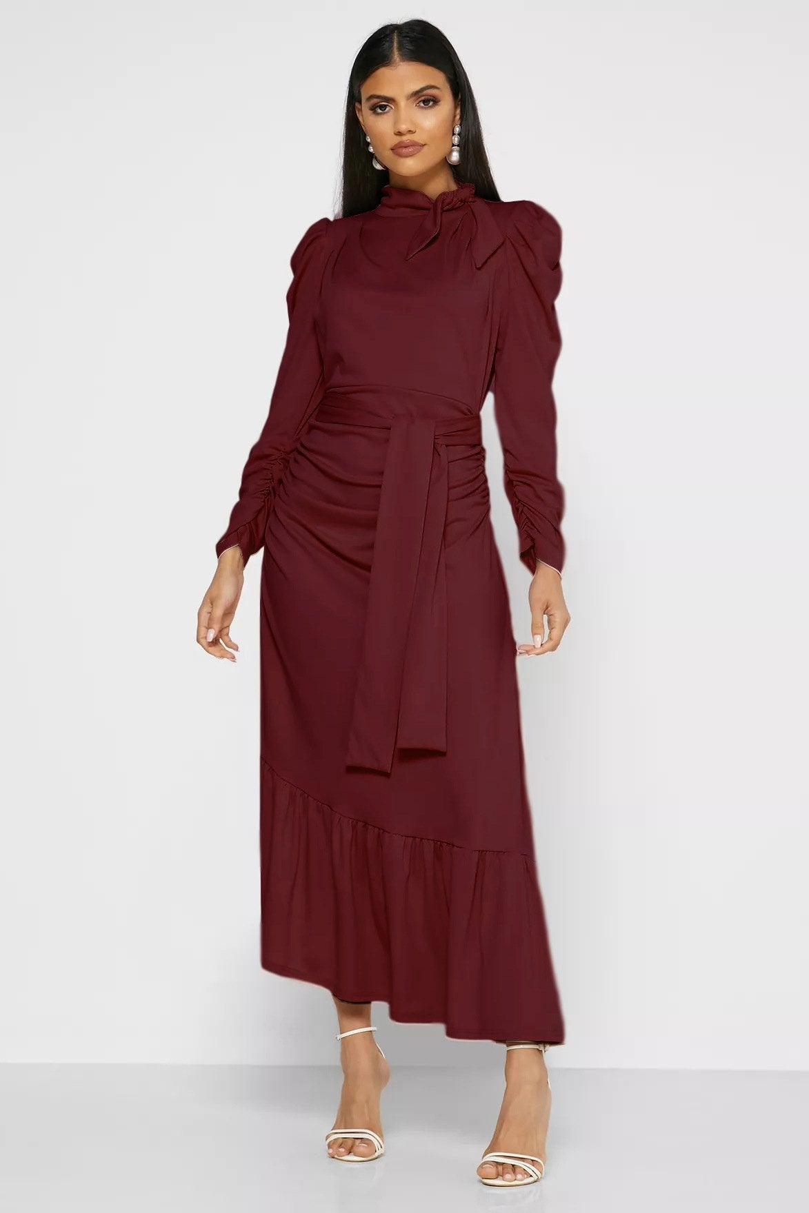 Jode Papyonlu Kuşaklı Flare Midi Elbise