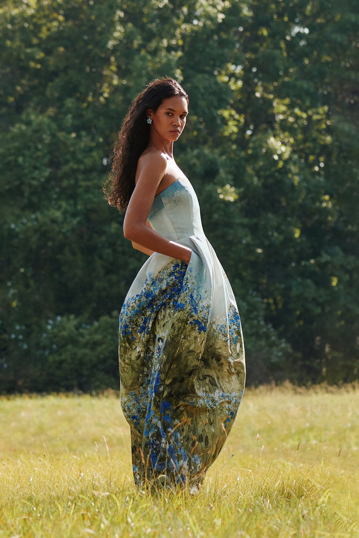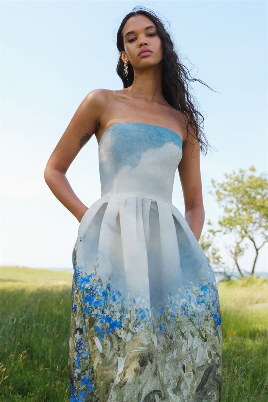 Jodie Baskılı Straplez Midi Elbise