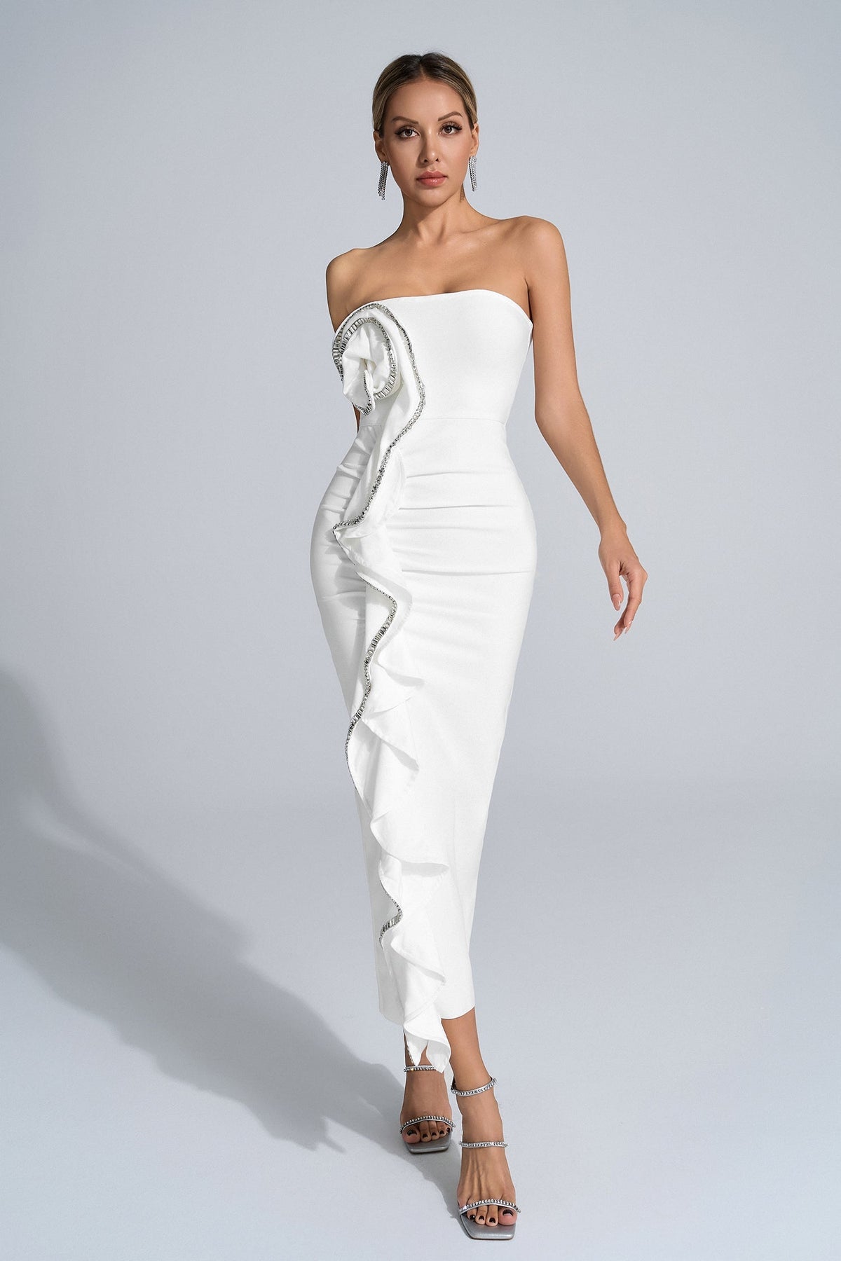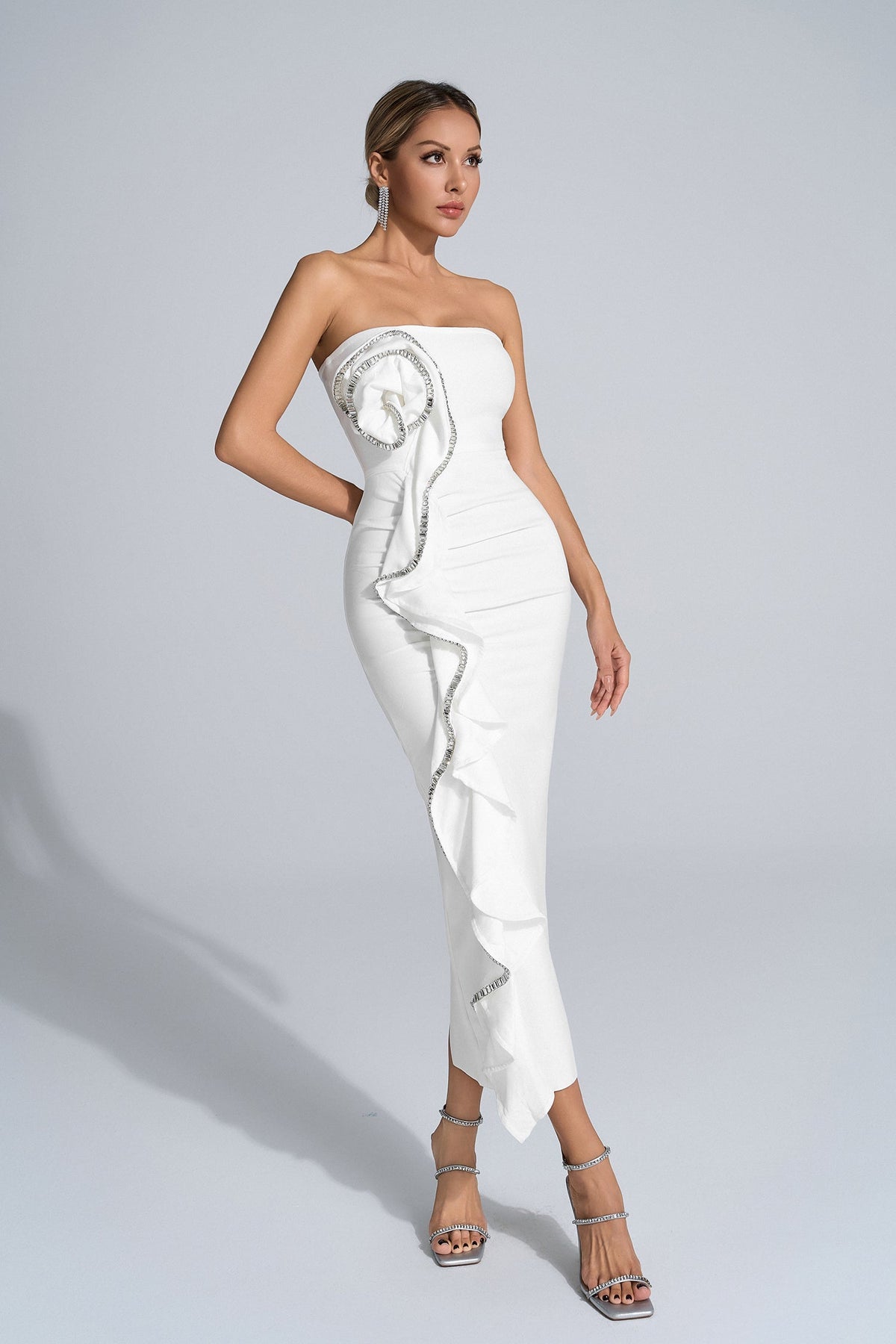 Kyler Diamante Çiçekli Midi Bandaj Maxi Elbise