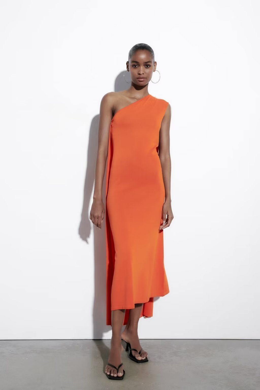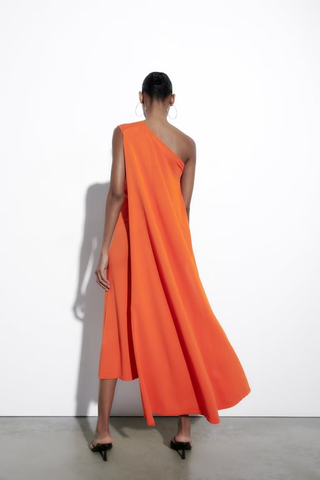 Laura Tek Omuz Pelerinli Örgü Midi Elbise