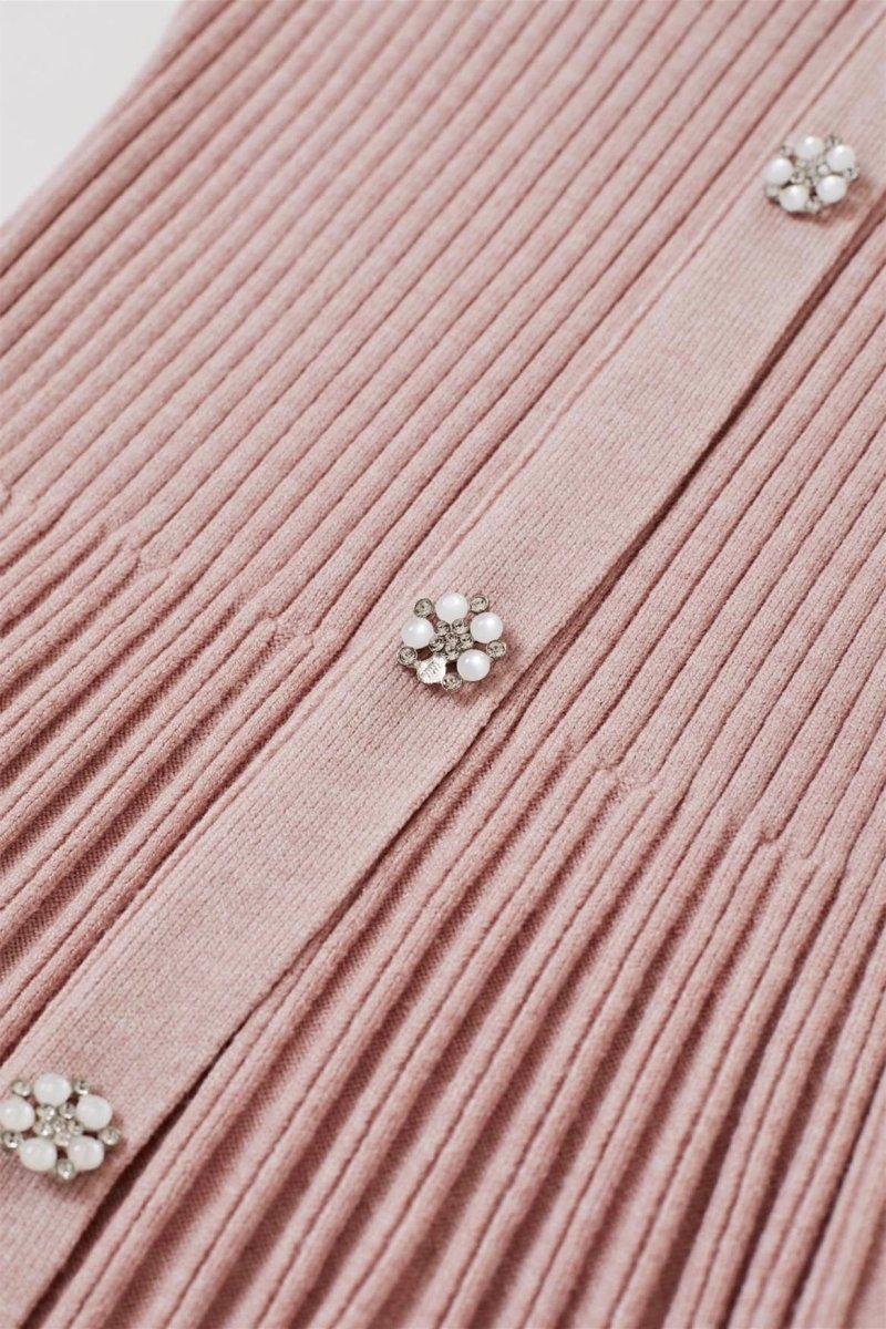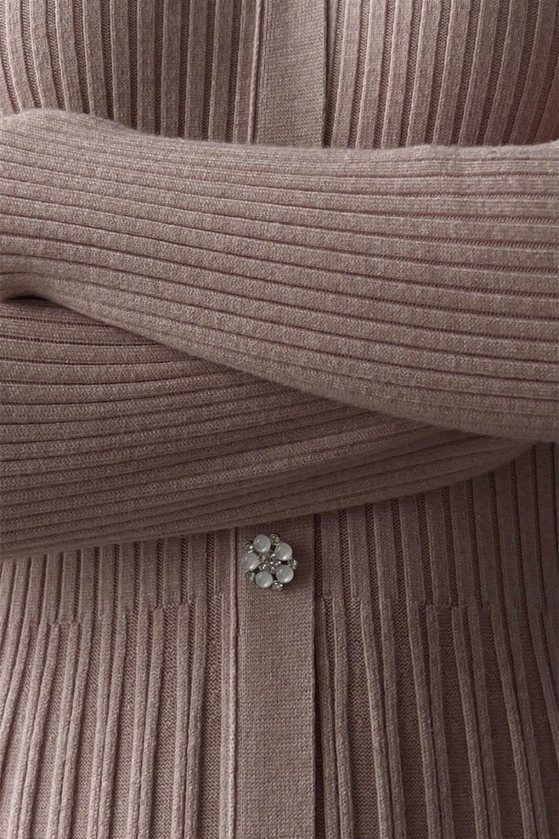Lillian V Yaka Çizgili Triko Midi Elbise