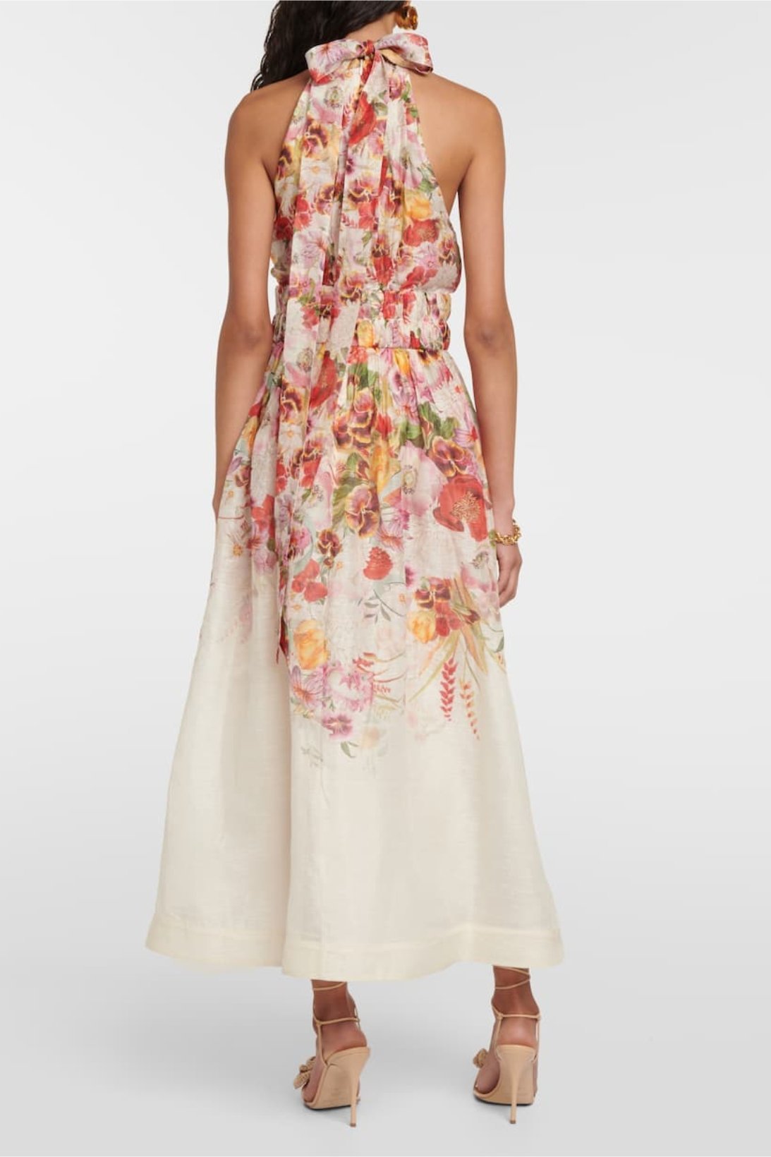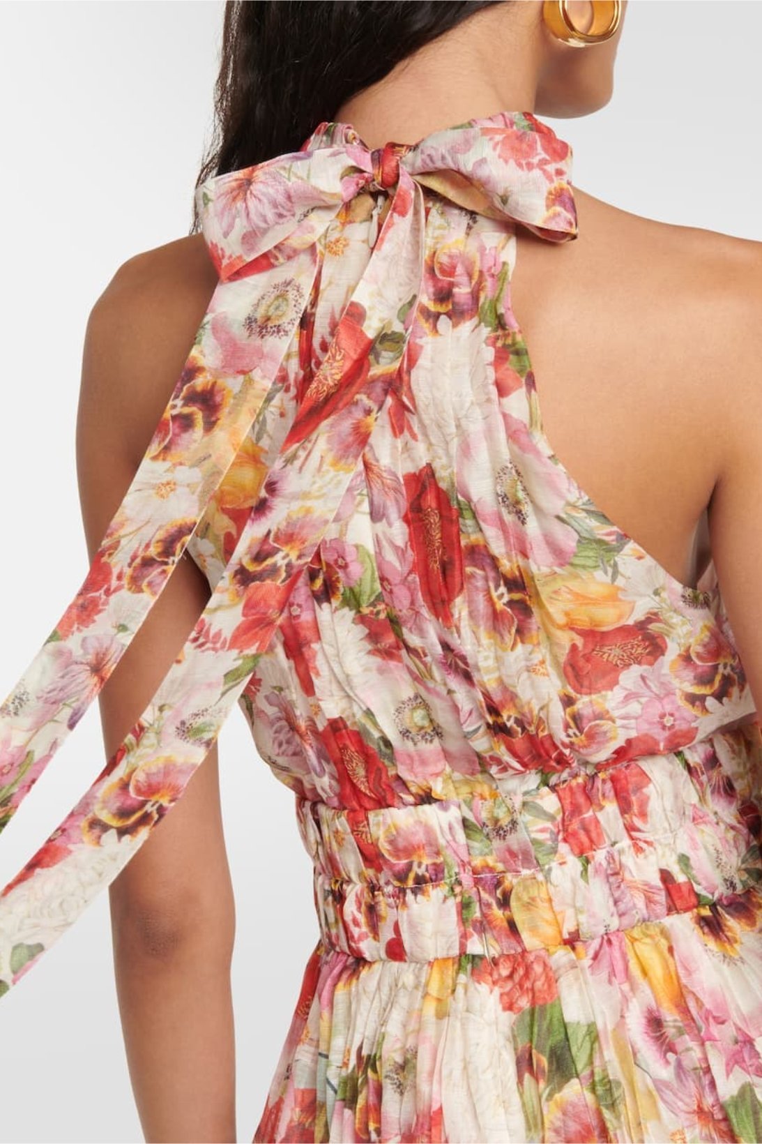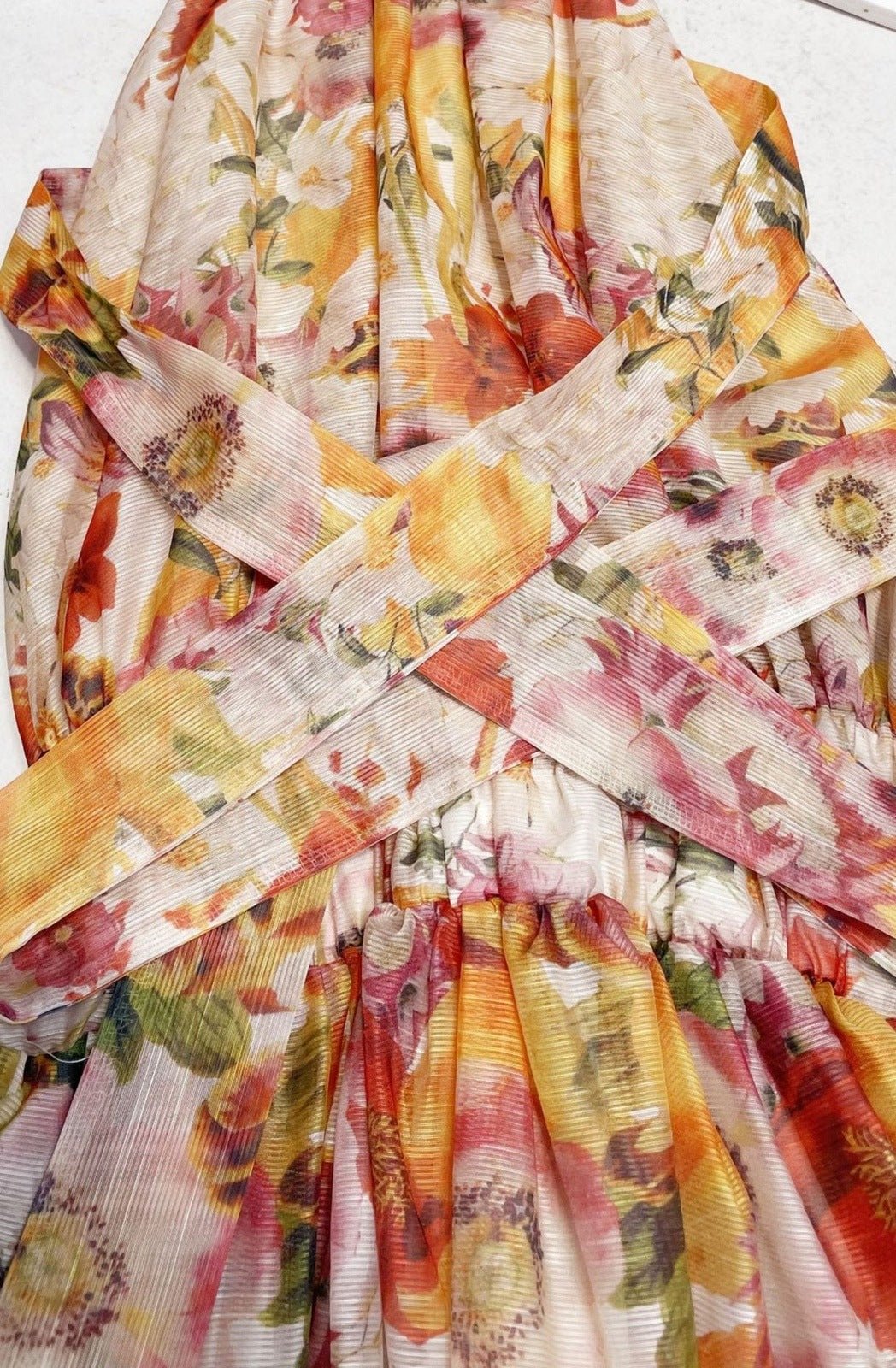 Mignon Baskılı Boyundan Bağlamalı Papyon Midi Elbise