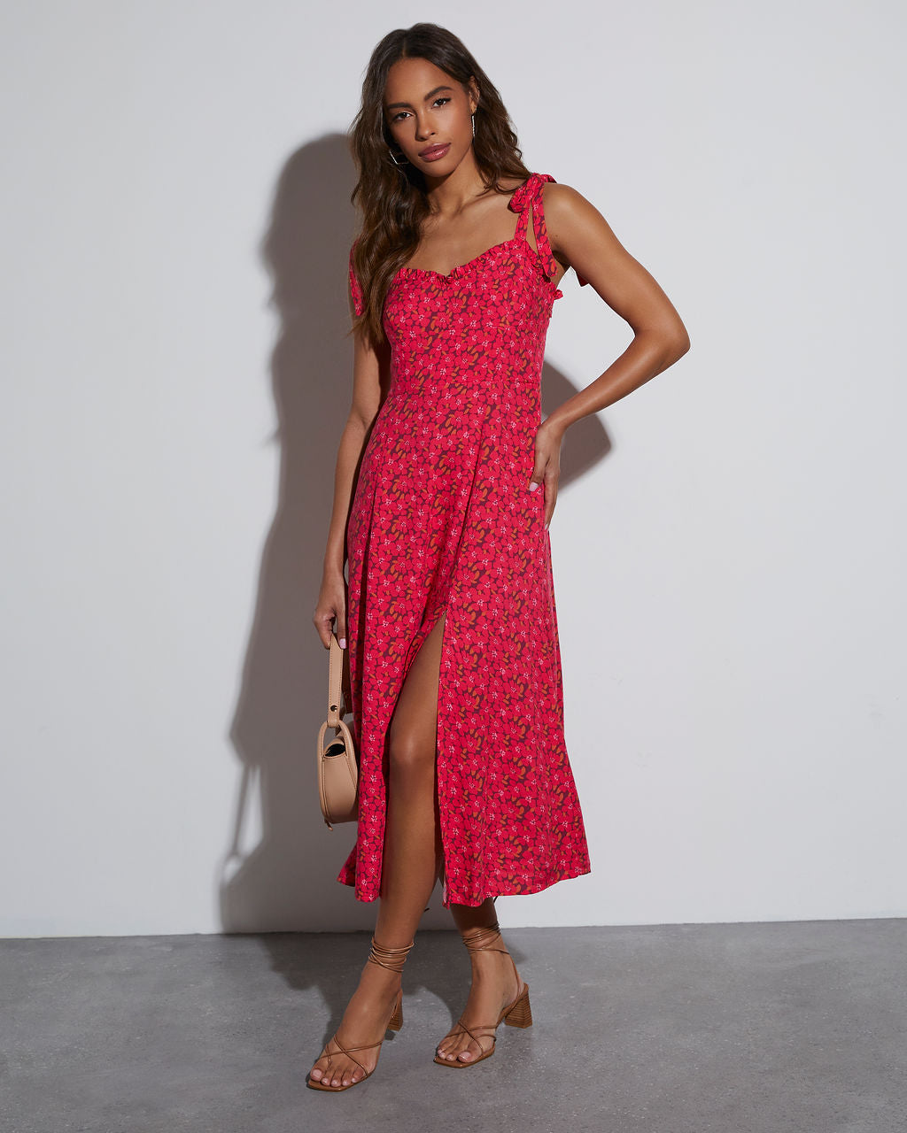 Riko Çiçek Omuz Bağlamalı Midi Elbise