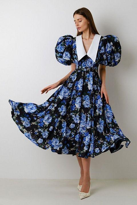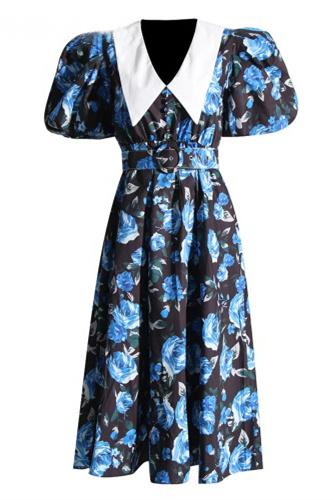 Riva Baskılı Peter Pan Yaka Midi Elbise
