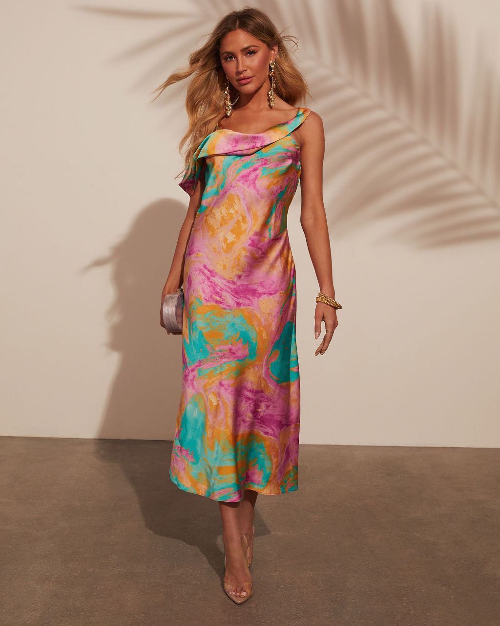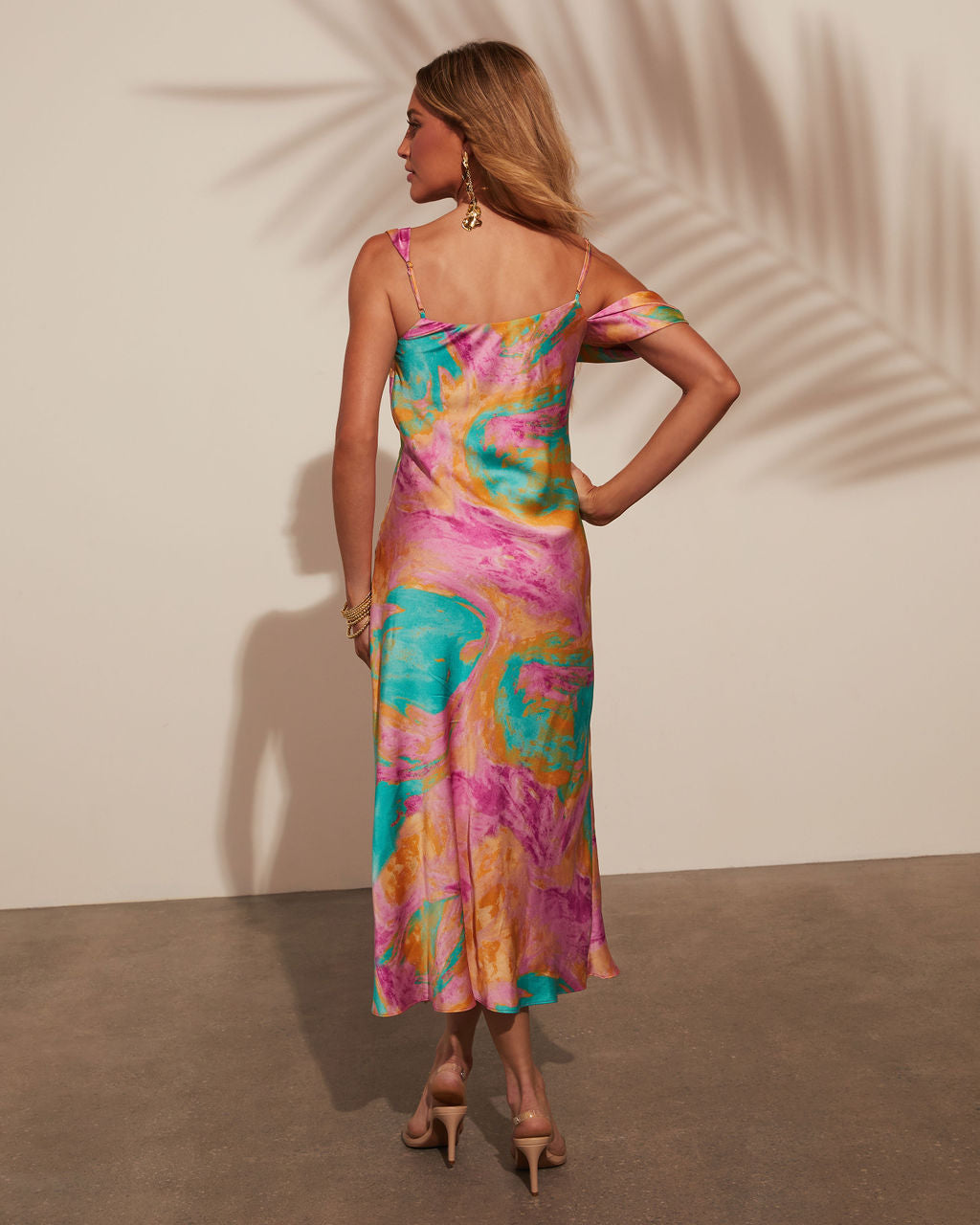Mallorca Saten Dekolteli Yaka Slip Midi Elbise