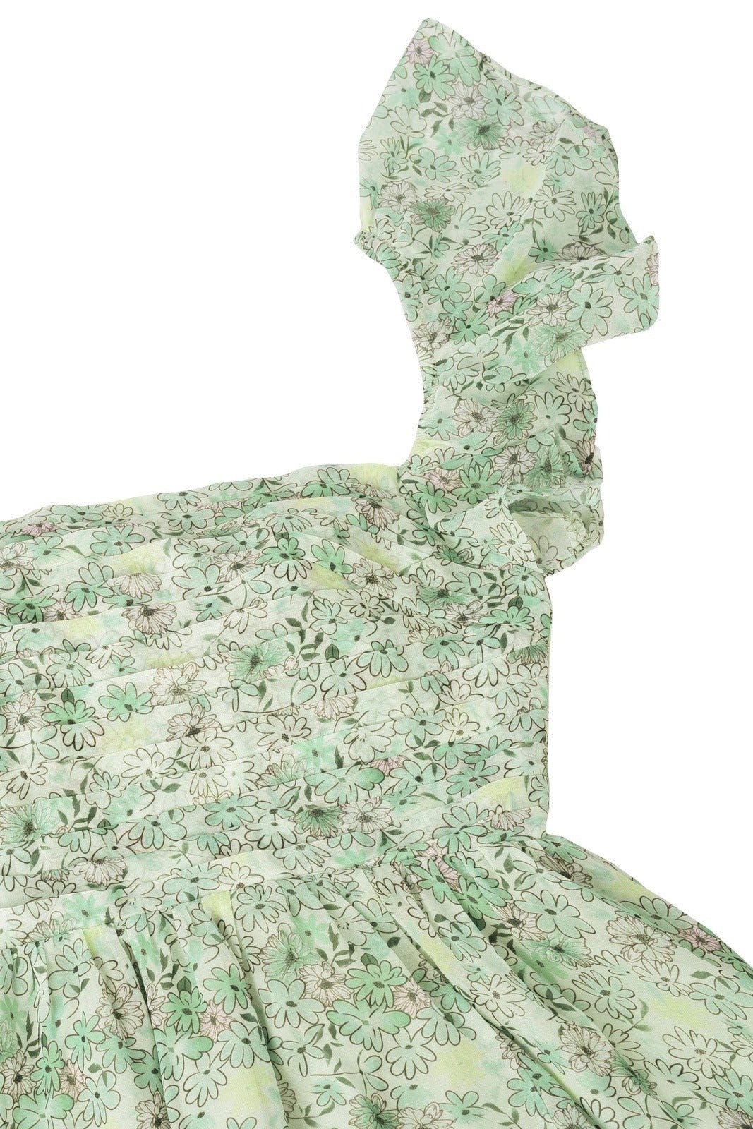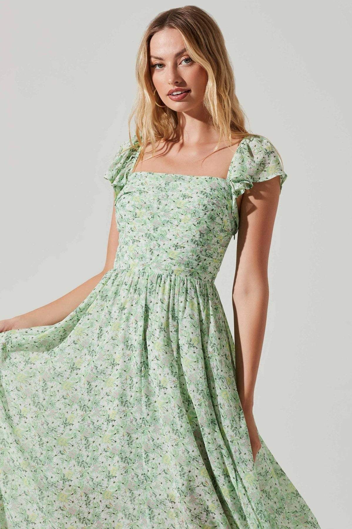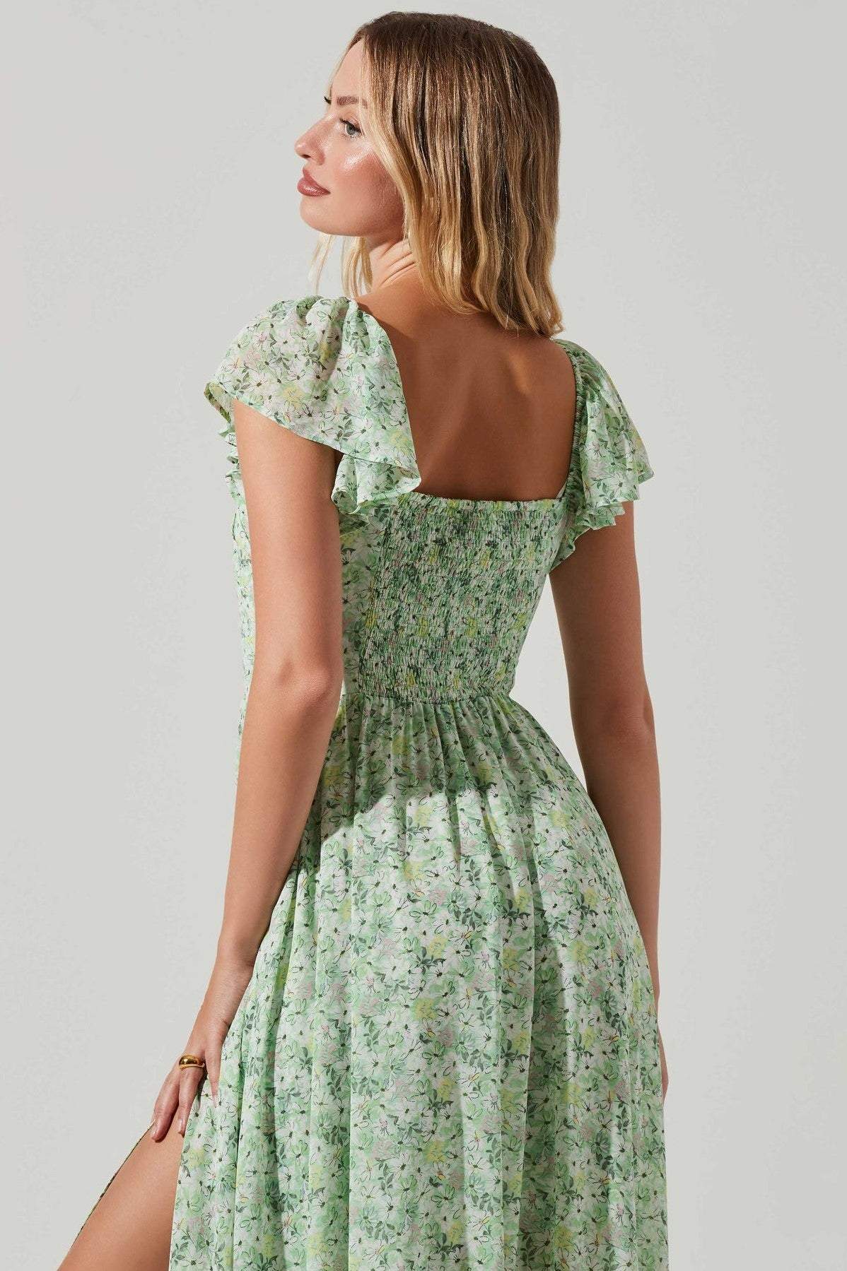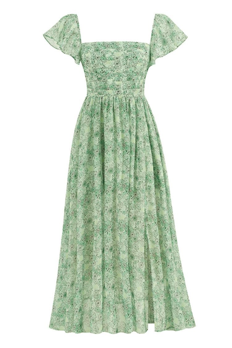 Terri Baskılı Pileli Korse Yırtmaçlı Midi Elbise