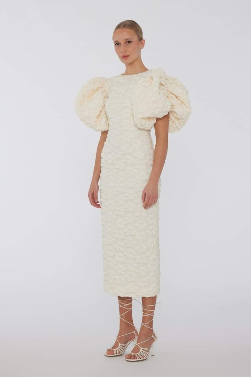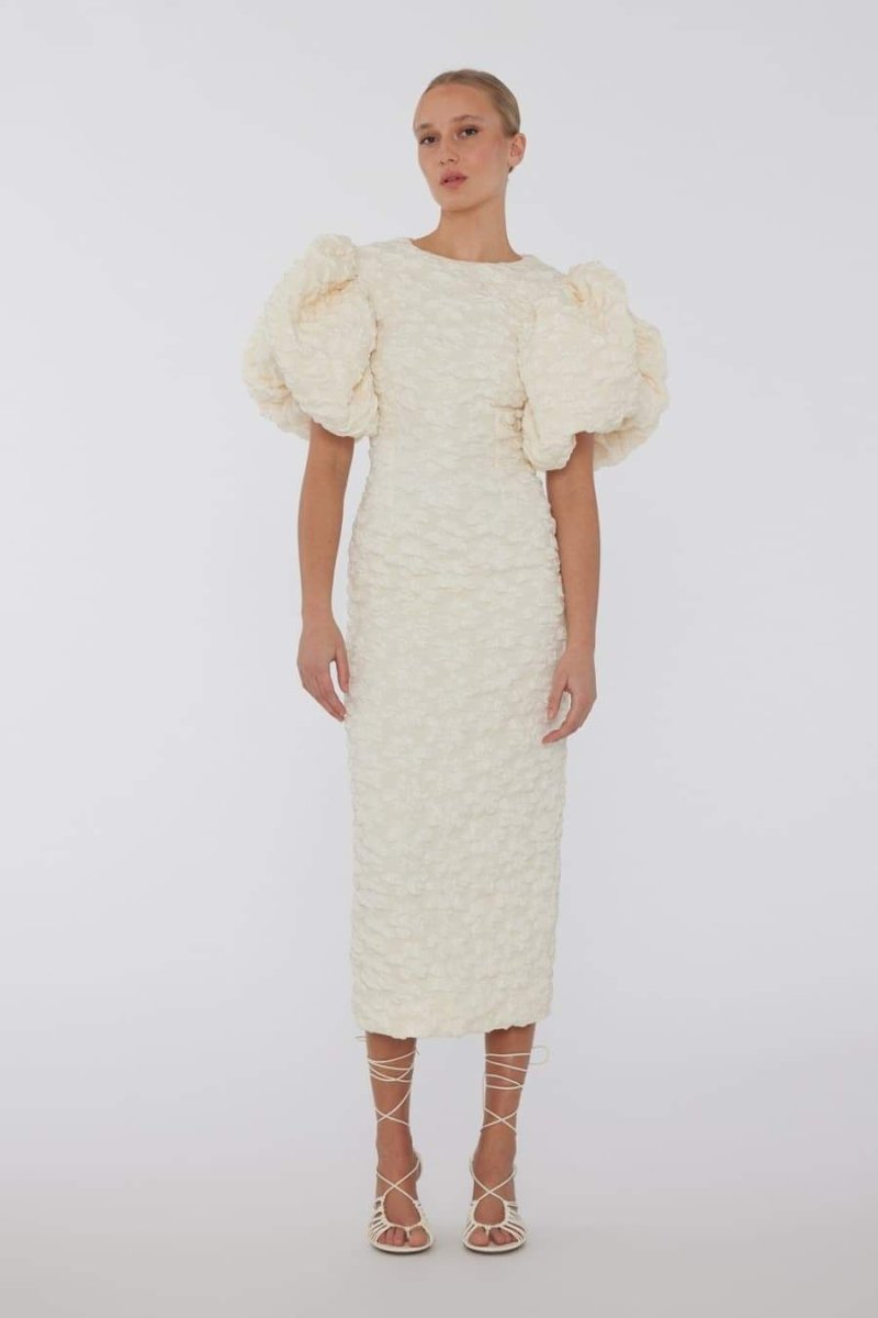 Veronica Jakarlı Puf Kollu Midi Elbise