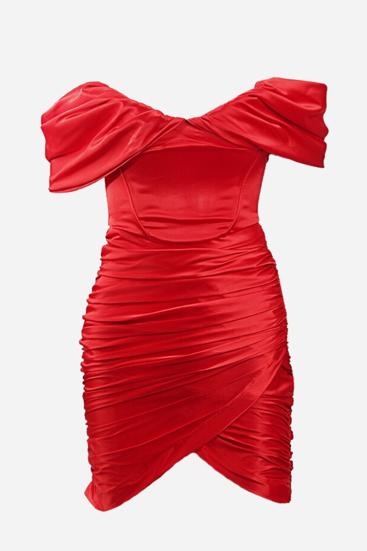 Candice Büzgülü Korse Düşük Omuz Saten Mini Elbise