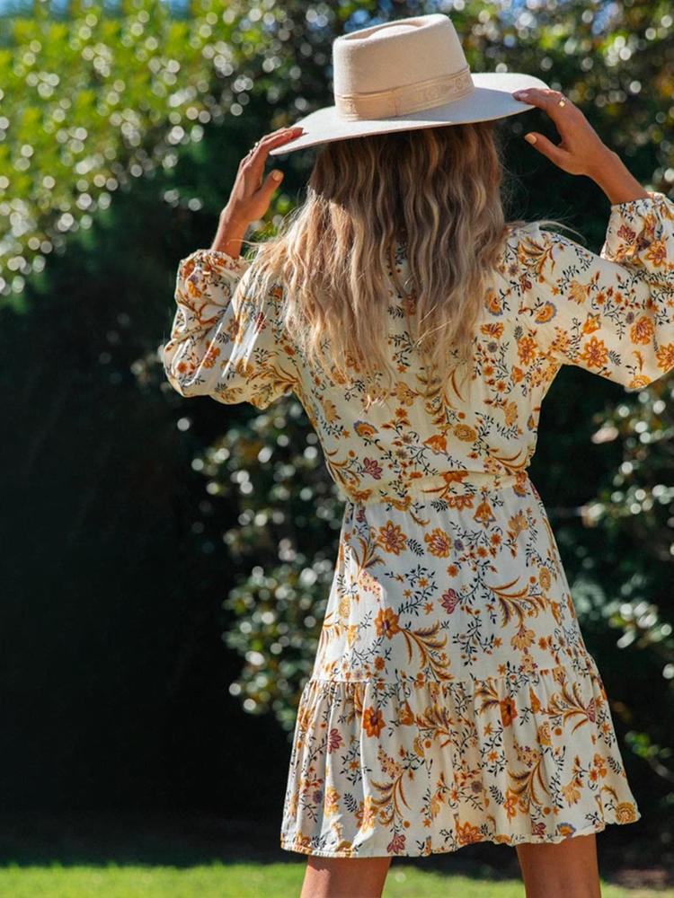 Delia Baskılı V Yaka Köylü Mini Elbise