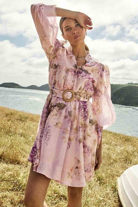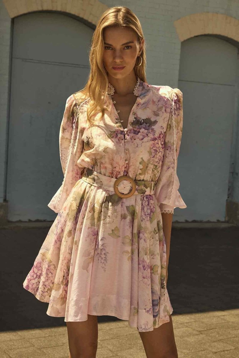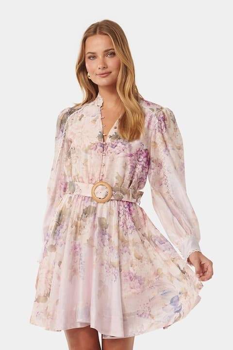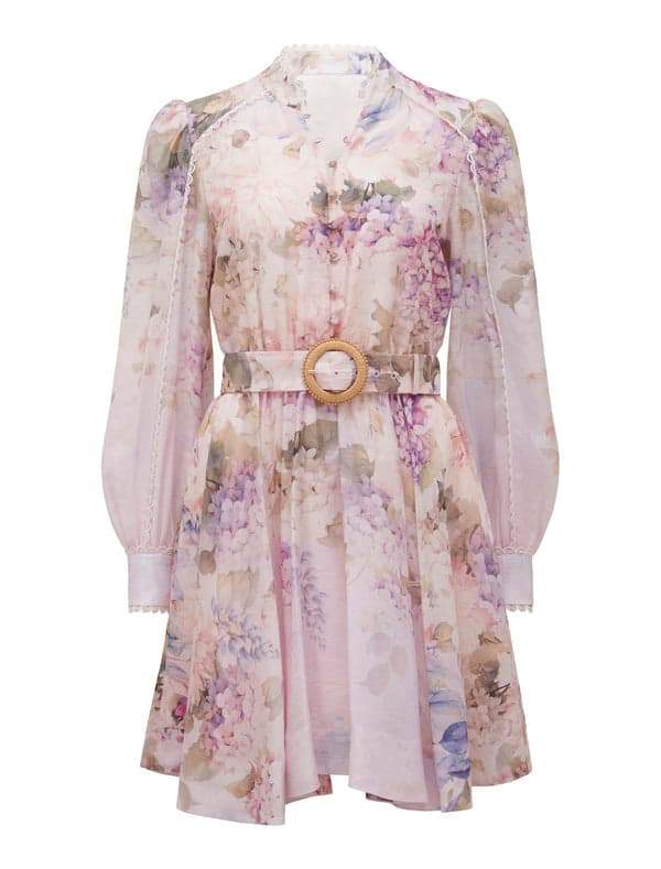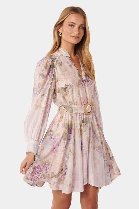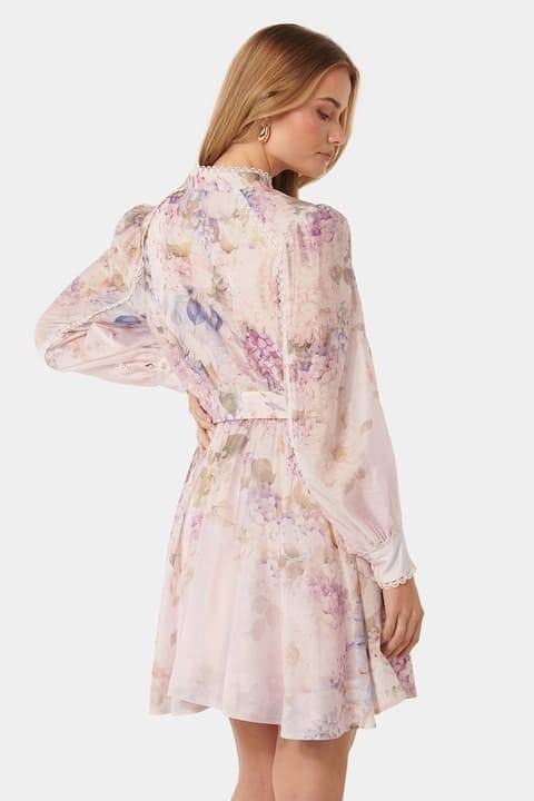 Denise Baskılı Dantel Detaylı Mini Elbise