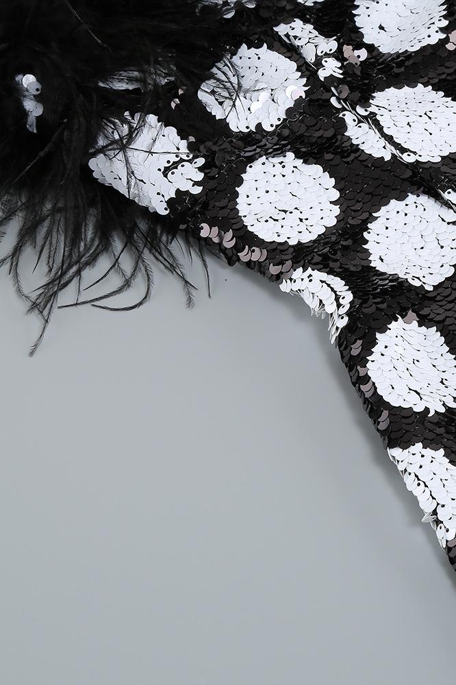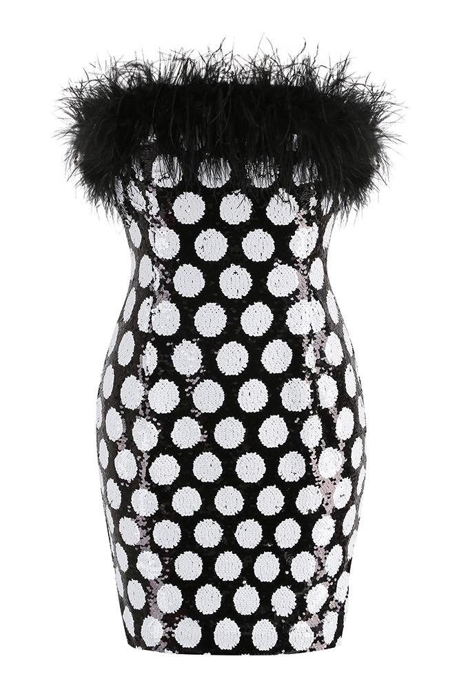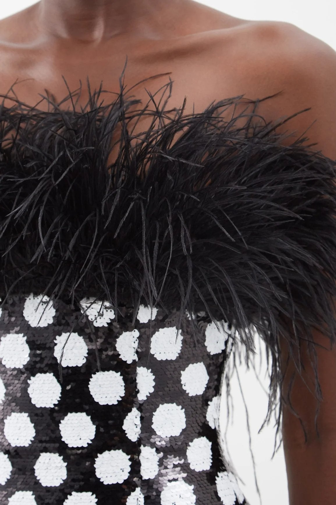 Dulcie Payetler Puantiyeli Tüy Mini Elbise