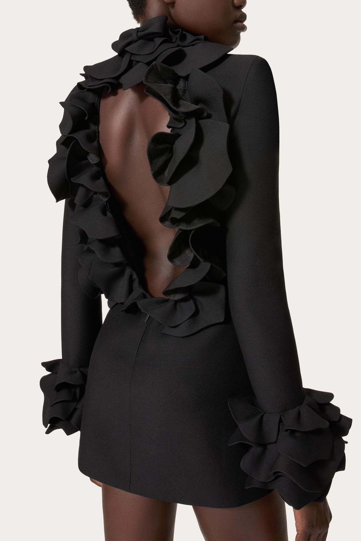 Elaine Sırtı Açık Fırfırlı Mini Elbise