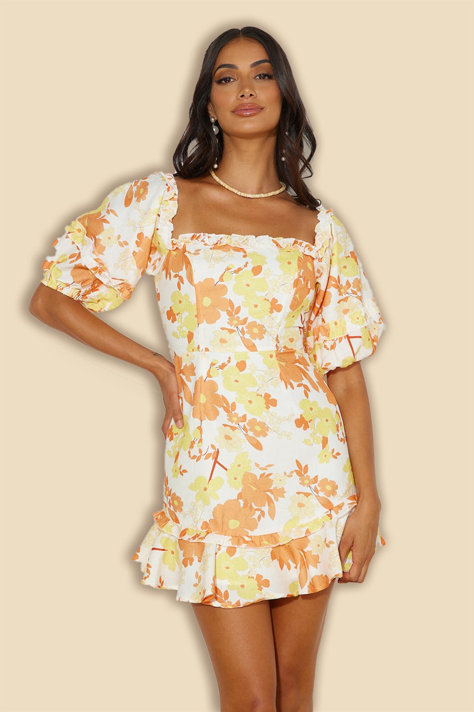 Idella Baskılı Bağcıklı Sırtı Açık Fırfırlı Mini Elbise