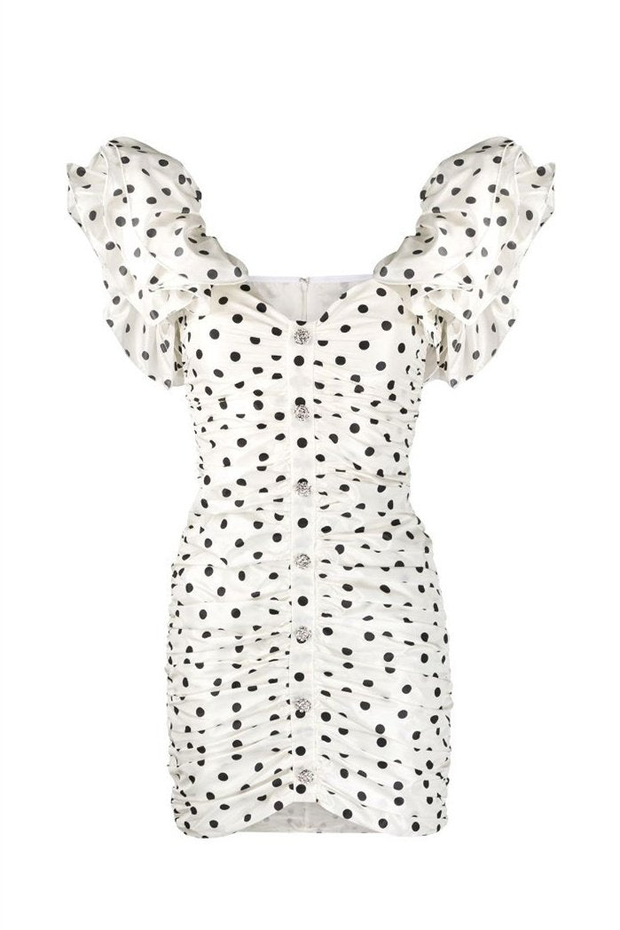Ivy Puantiyeli Fırfırlı Mini Elbise