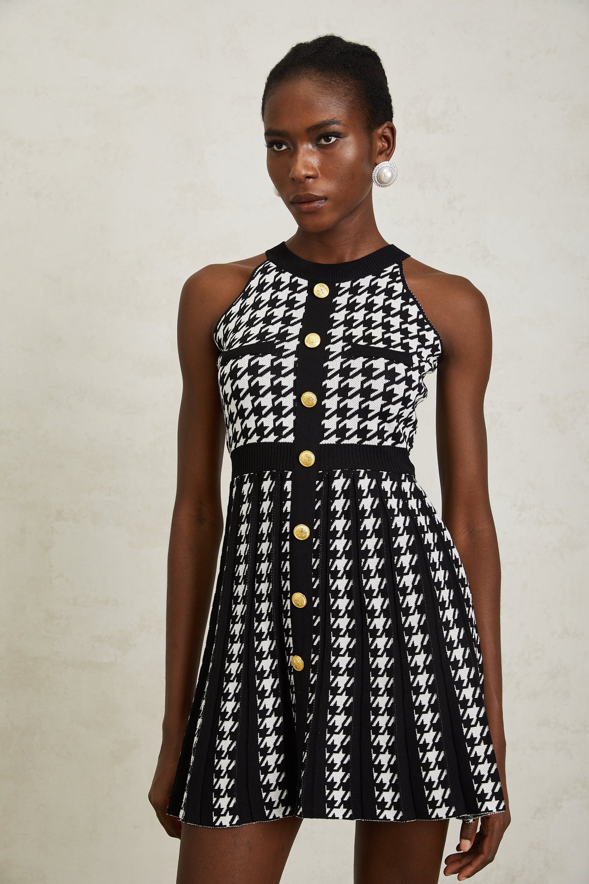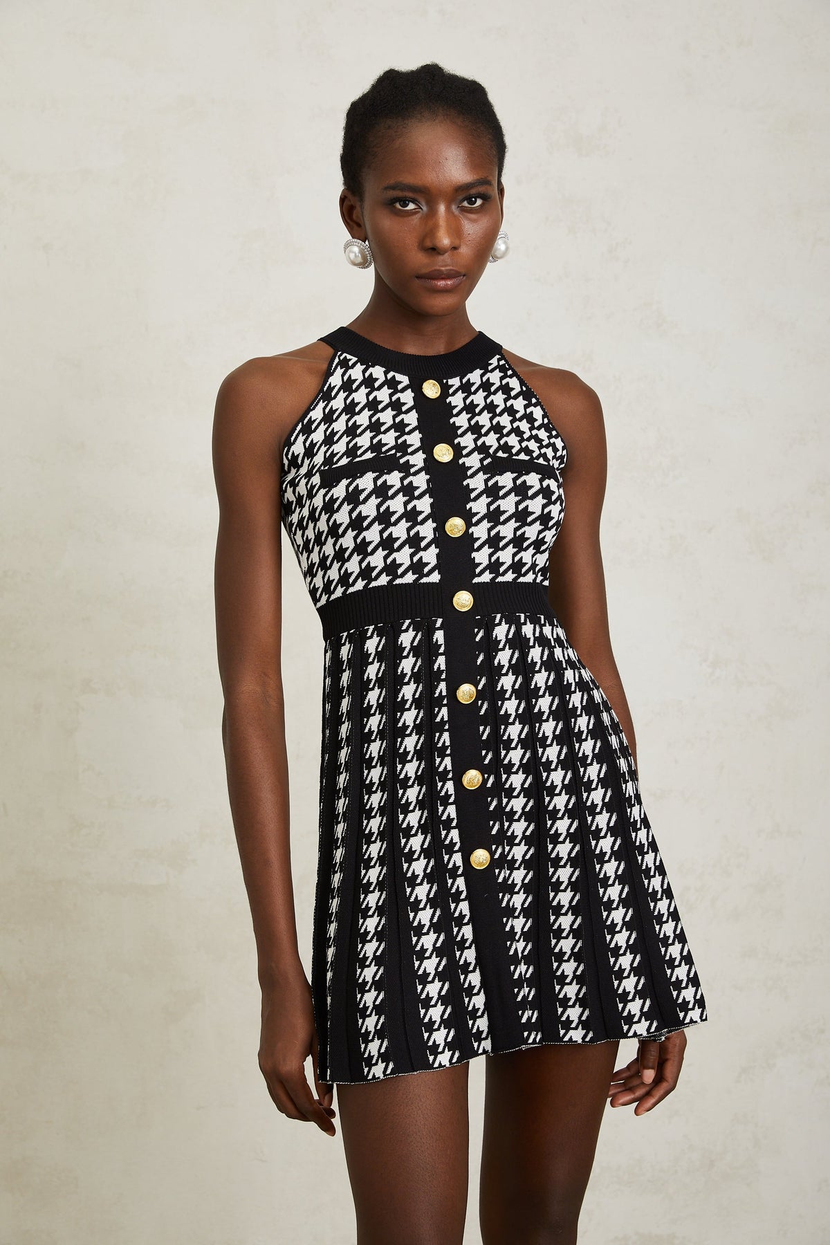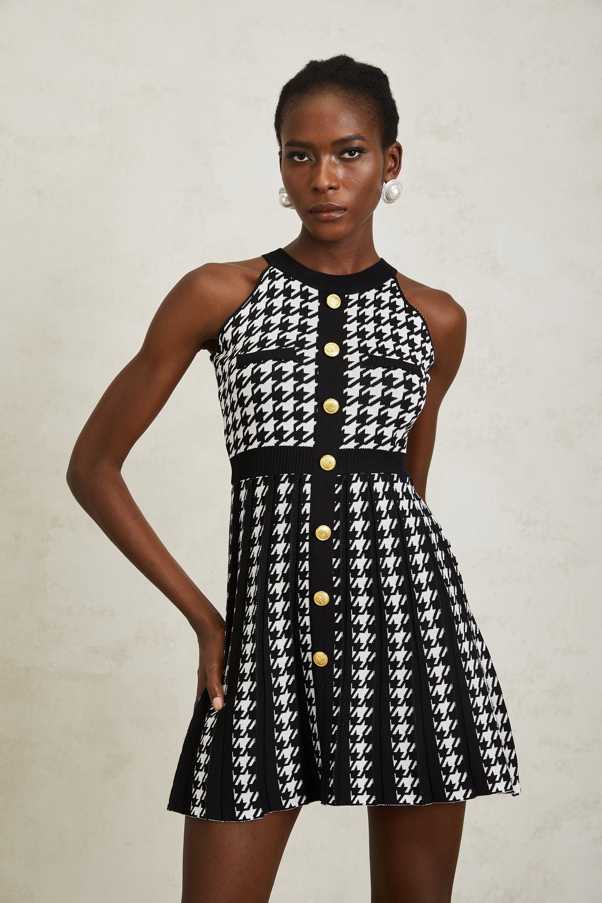 Jacqueline Siyah Balıksırtı Kroşe Örgü Mini Elbise