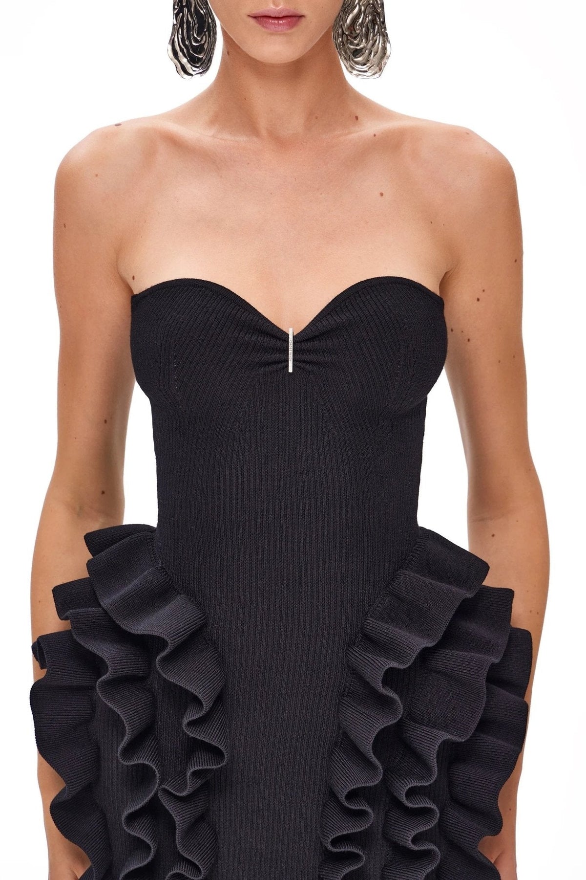 Jenny Straplez Fırfırlı Triko Mini Elbise