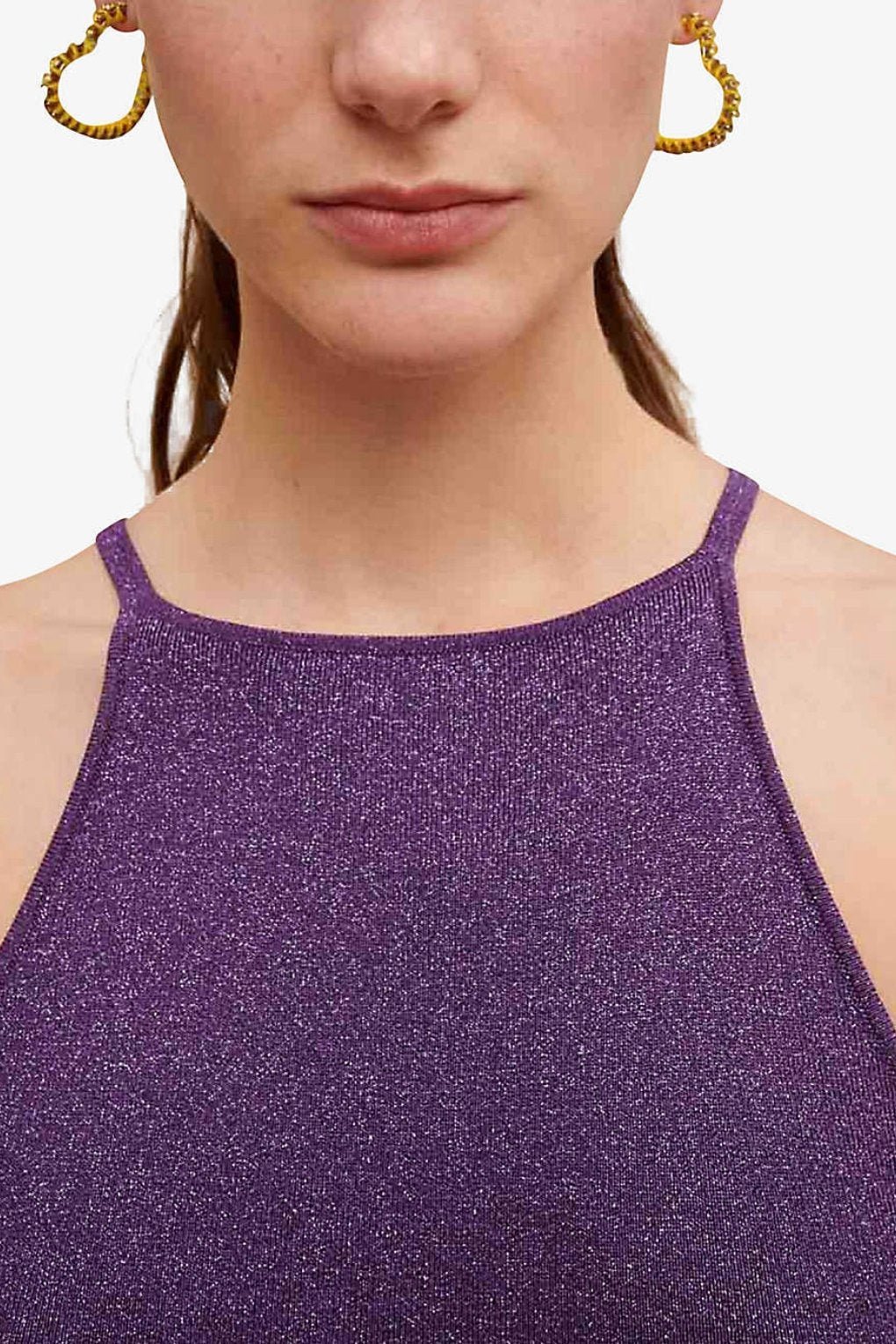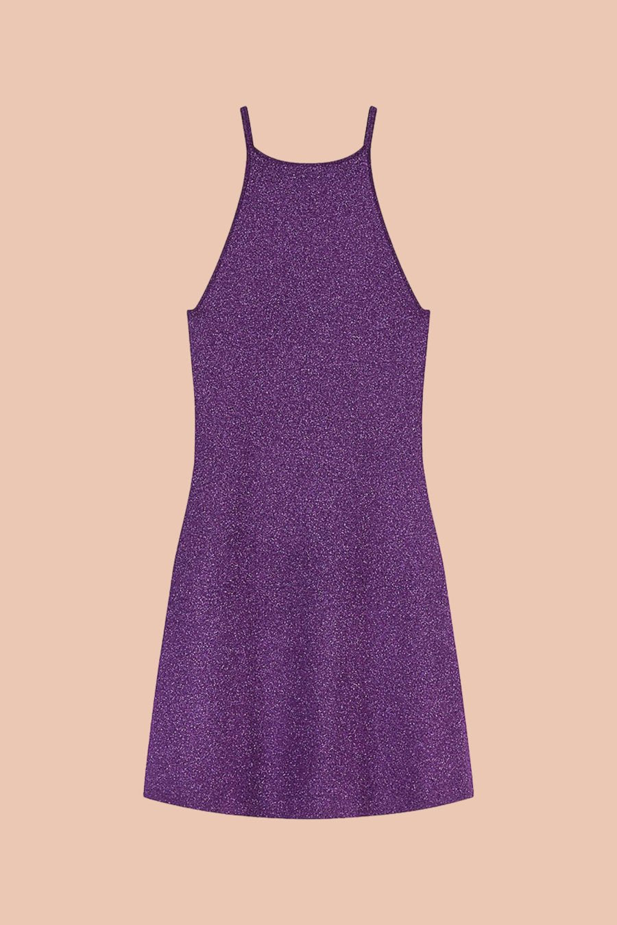 Kay Boyundan Bağlamalı Simli Triko Mini Elbise